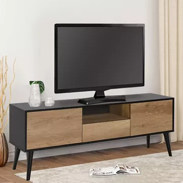 Έπιπλο τηλεόρασης Style Megapap από μελαμίνη χρώμα μαύρο - tori 160x41x58εκ.