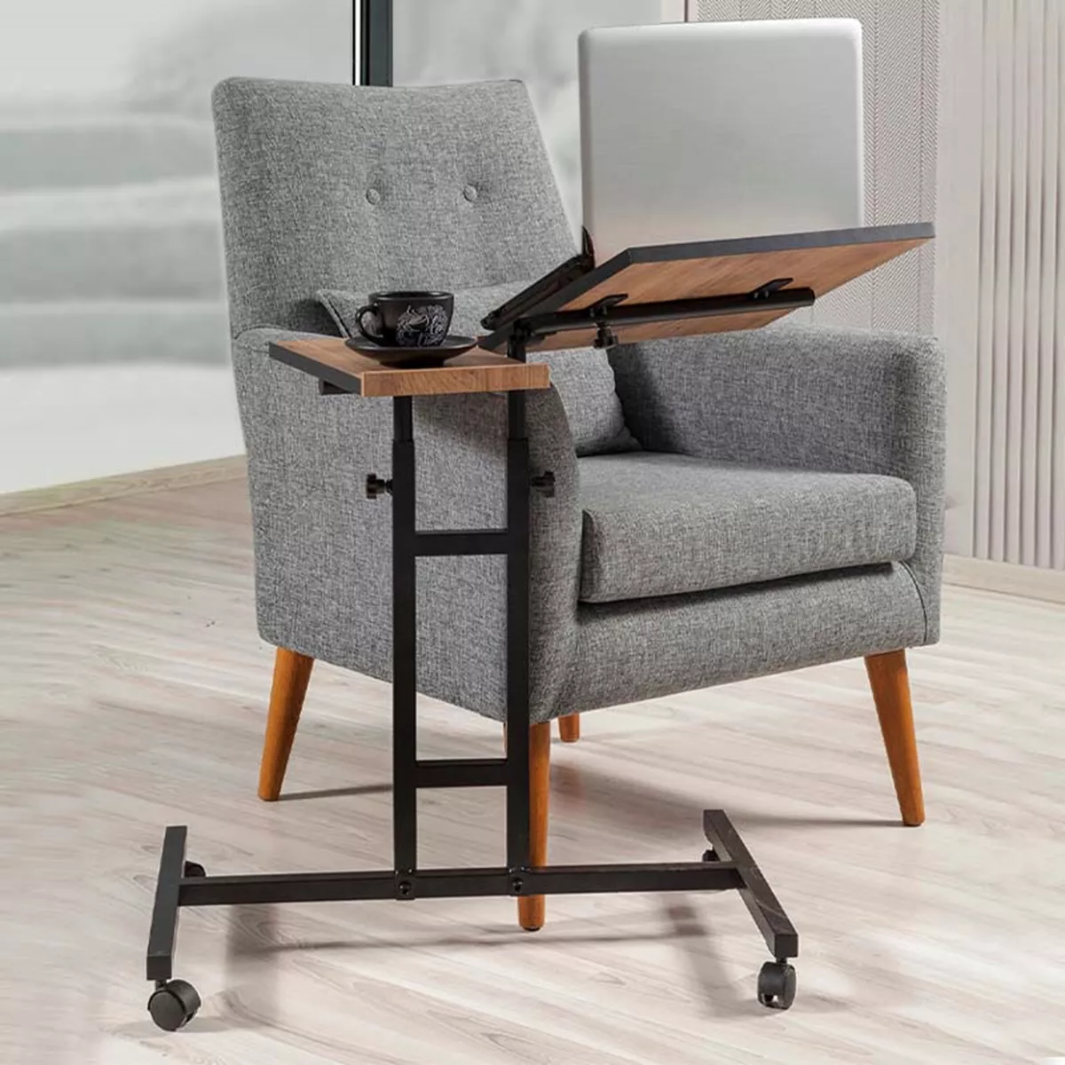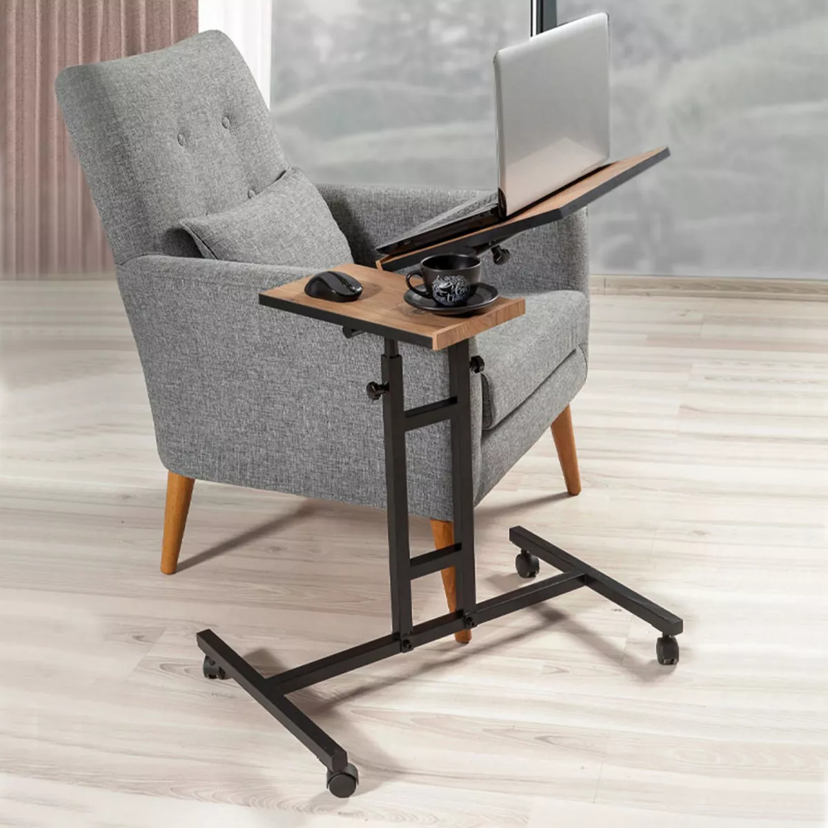 Τραπεζάκι βοηθητικό - laptop Frenk Megapap πολυμορφικό μεταλλικό - μελαμίνης χρώμα atlantic pine 67x45,5x62/87εκ.