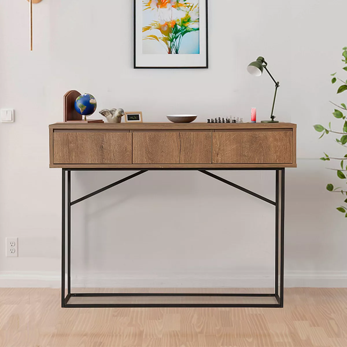 Κονσόλα Amedeo Megapap μεταλλική - μελαμίνης χρώμα καρυδί 120x36x90εκ.