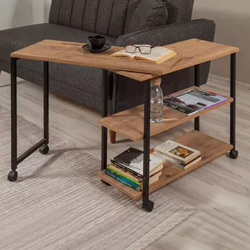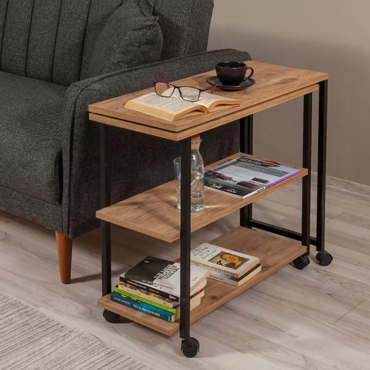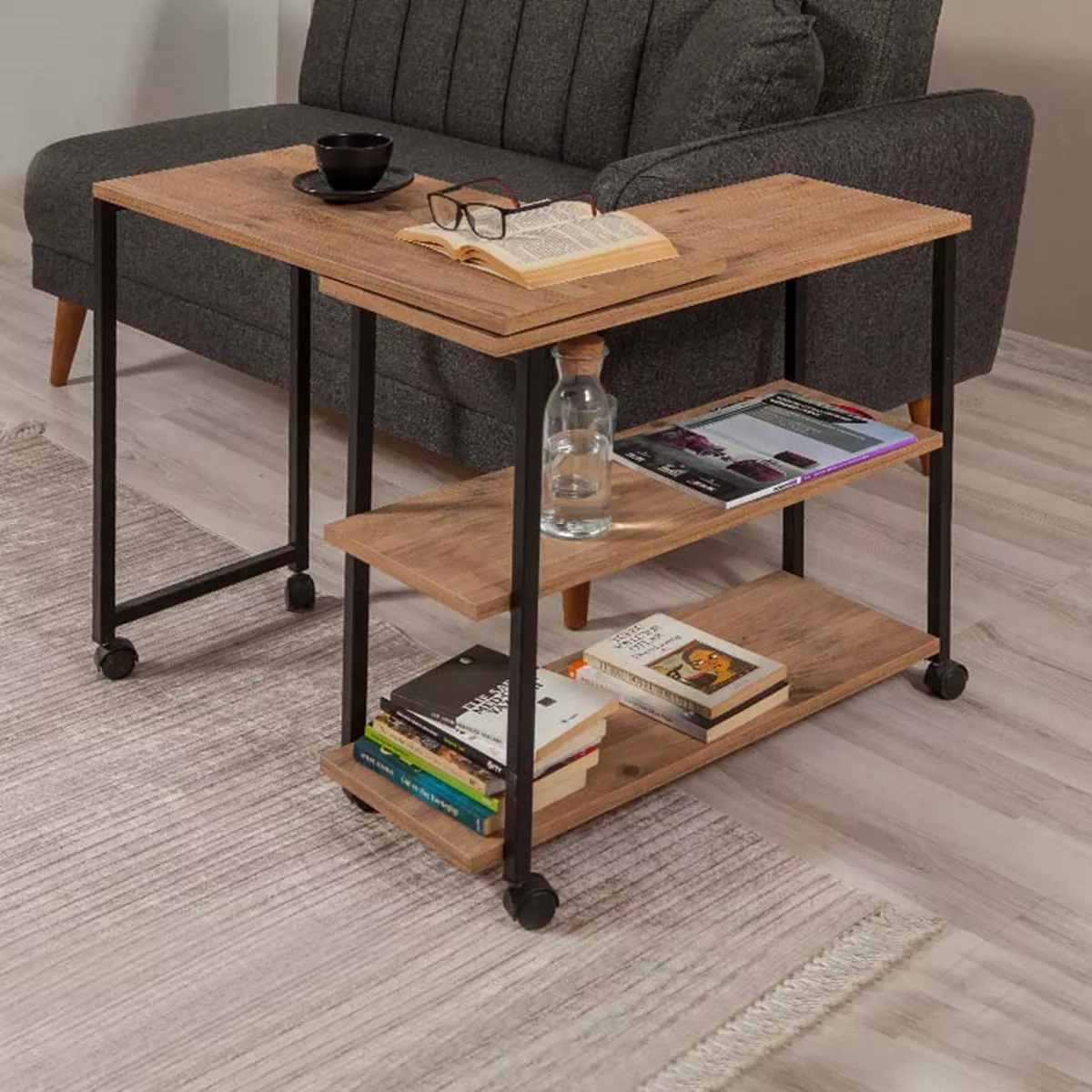 Τραπεζάκι βοηθητικό Frenk Megapap πολυμορφικό μεταλλικό - μελαμίνης χρώμα atlantic pine 76x30x66εκ.