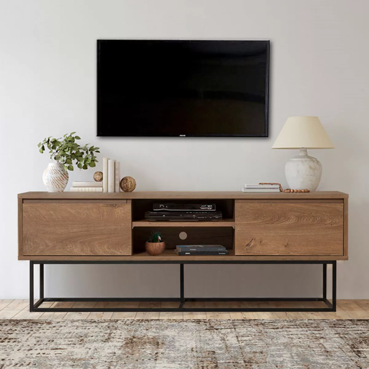 Έπιπλο τηλεόρασης Amedeo Megapap από μελαμίνη χρώμα καρυδί 140x40x50εκ.