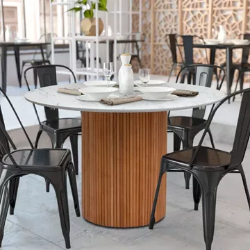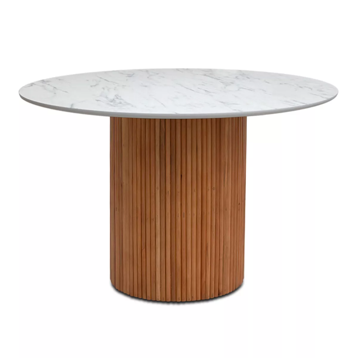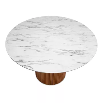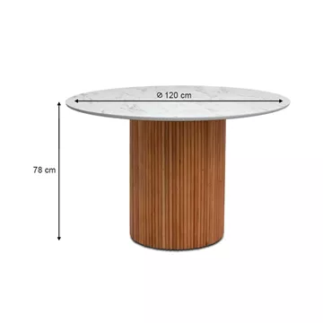 Τραπέζι Borno Megapap χρώμα φυσικό - λευκό εφέ μαρμάρου Ø120x78 εκ.