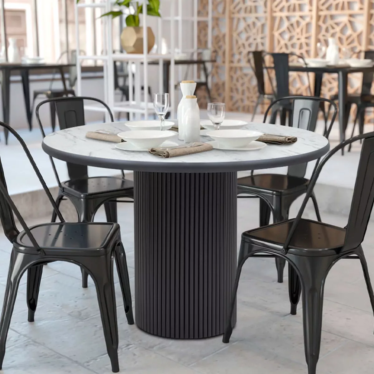 Τραπέζι Borno Megapap χρώμα μαύρο - λευκό εφέ μαρμάρου Ø115x79 εκ.