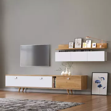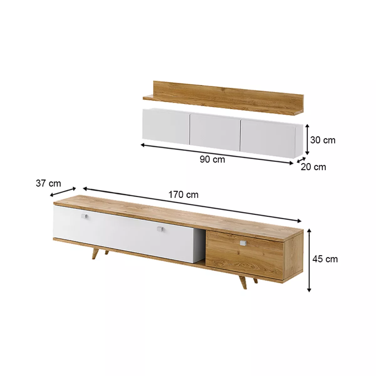 Σύνθεση τηλεόρασης Hera Megapap χρώμα sapphire oak - λευκό 170x37x45εκ.