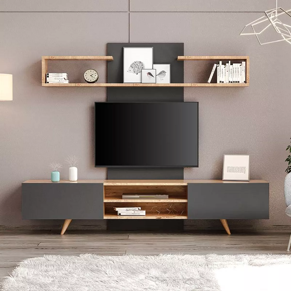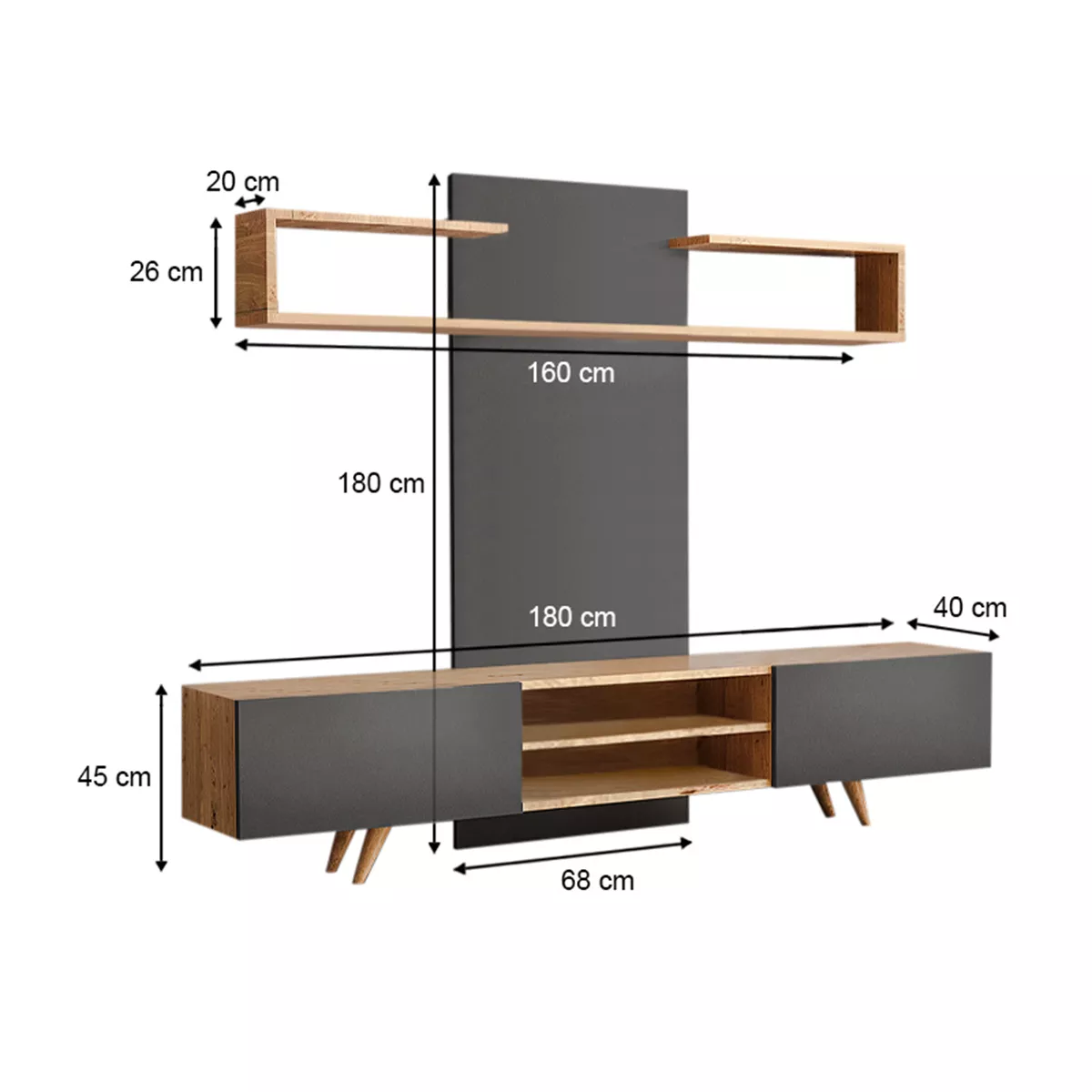 Σύνθεση τηλεόρασης Giacomo Megapap χρώμα sapphire oak - ανθρακί 180x40x45εκ.