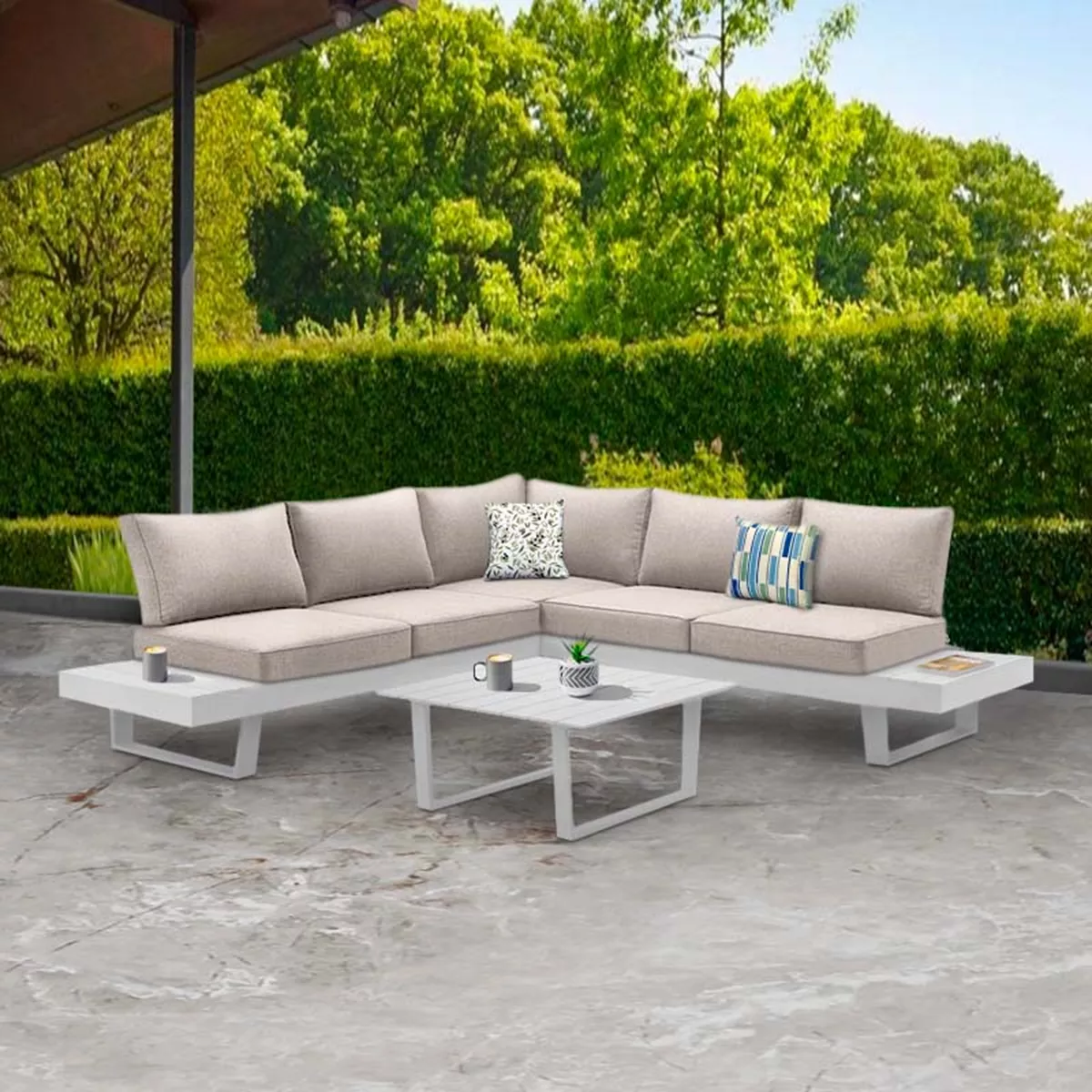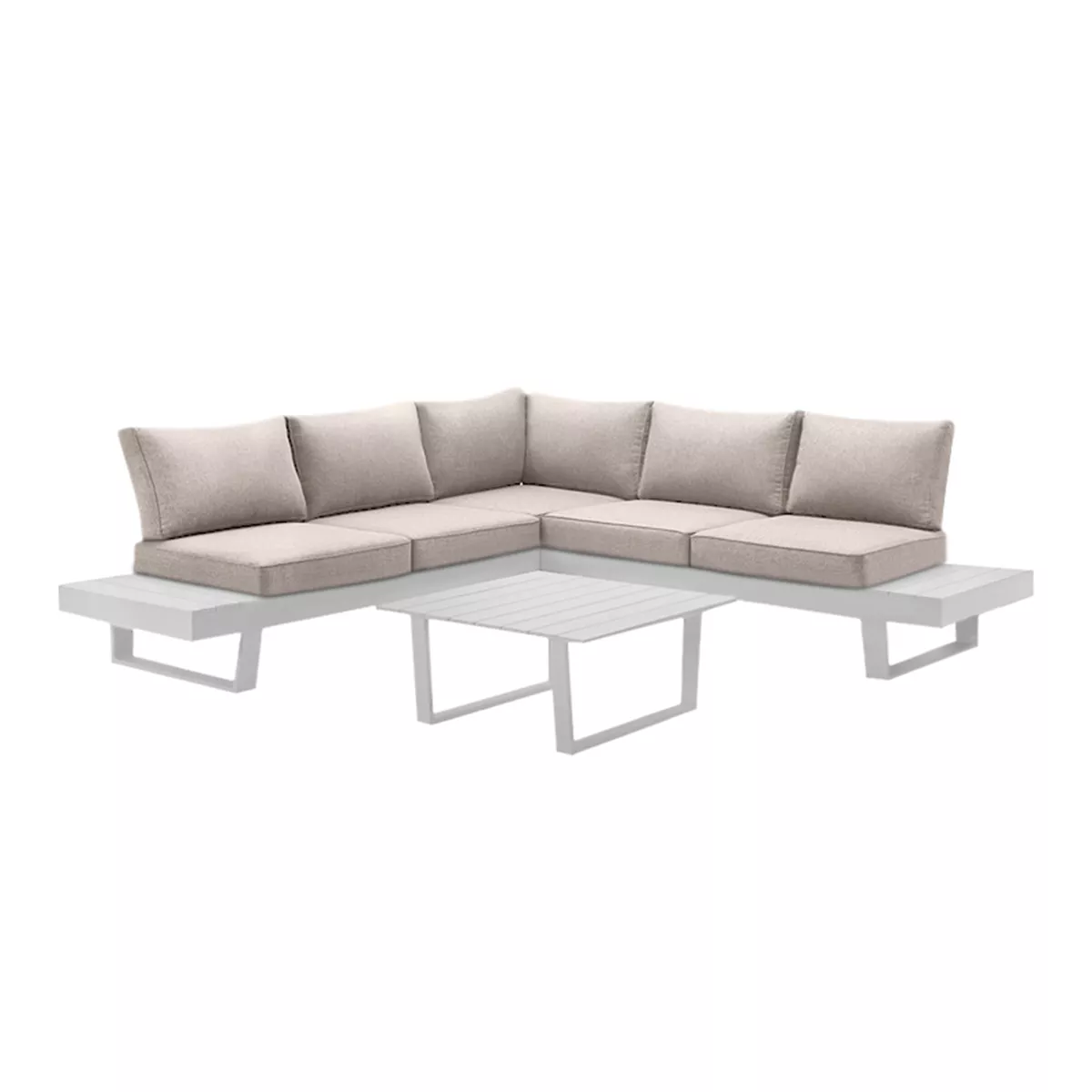 Σαλόνι κήπου γωνιακό Lyra Megapap σετ 3 τμχ μέταλλο - ξύλο χρώμα λευκό