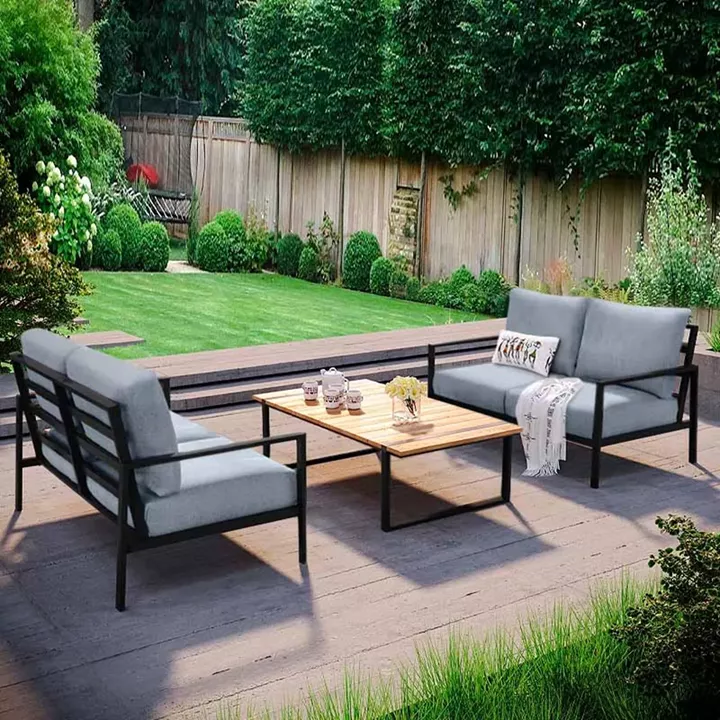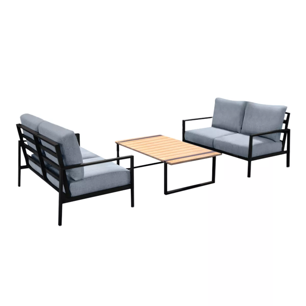 Σαλόνι κήπου Ermis Megapap σετ 3 τμχ μέταλλο - ξύλο χρώμα μαύρο - γκρι