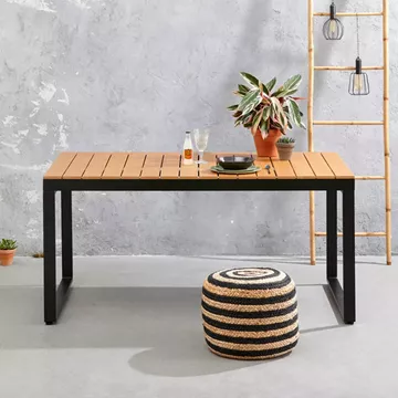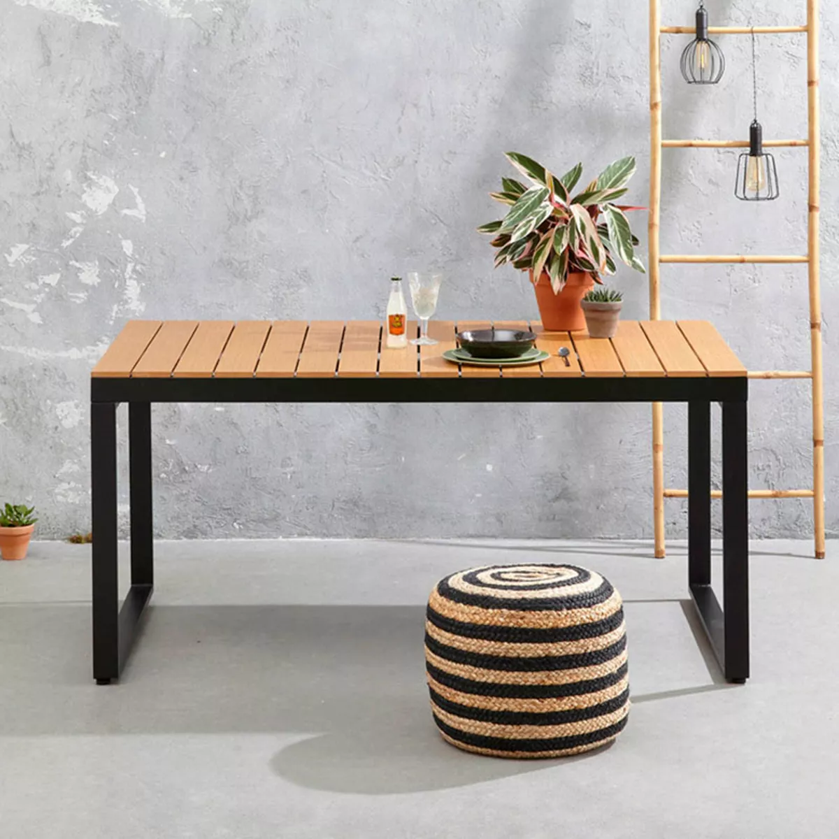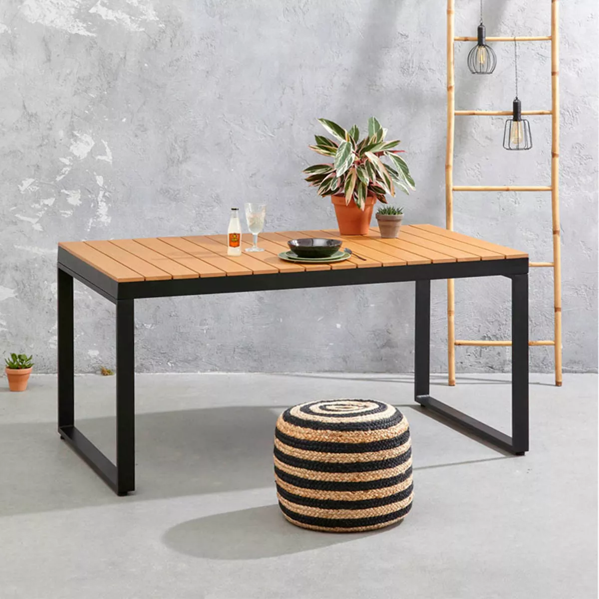 Τραπέζι κήπου Poseidon Megapap μεταλλικό - μασίφ ξύλο χρώμα μαύρο - καρυδί 150x82x75εκ.