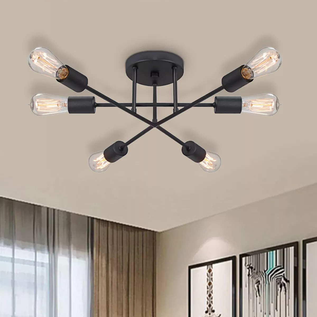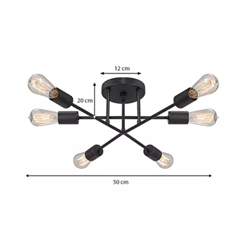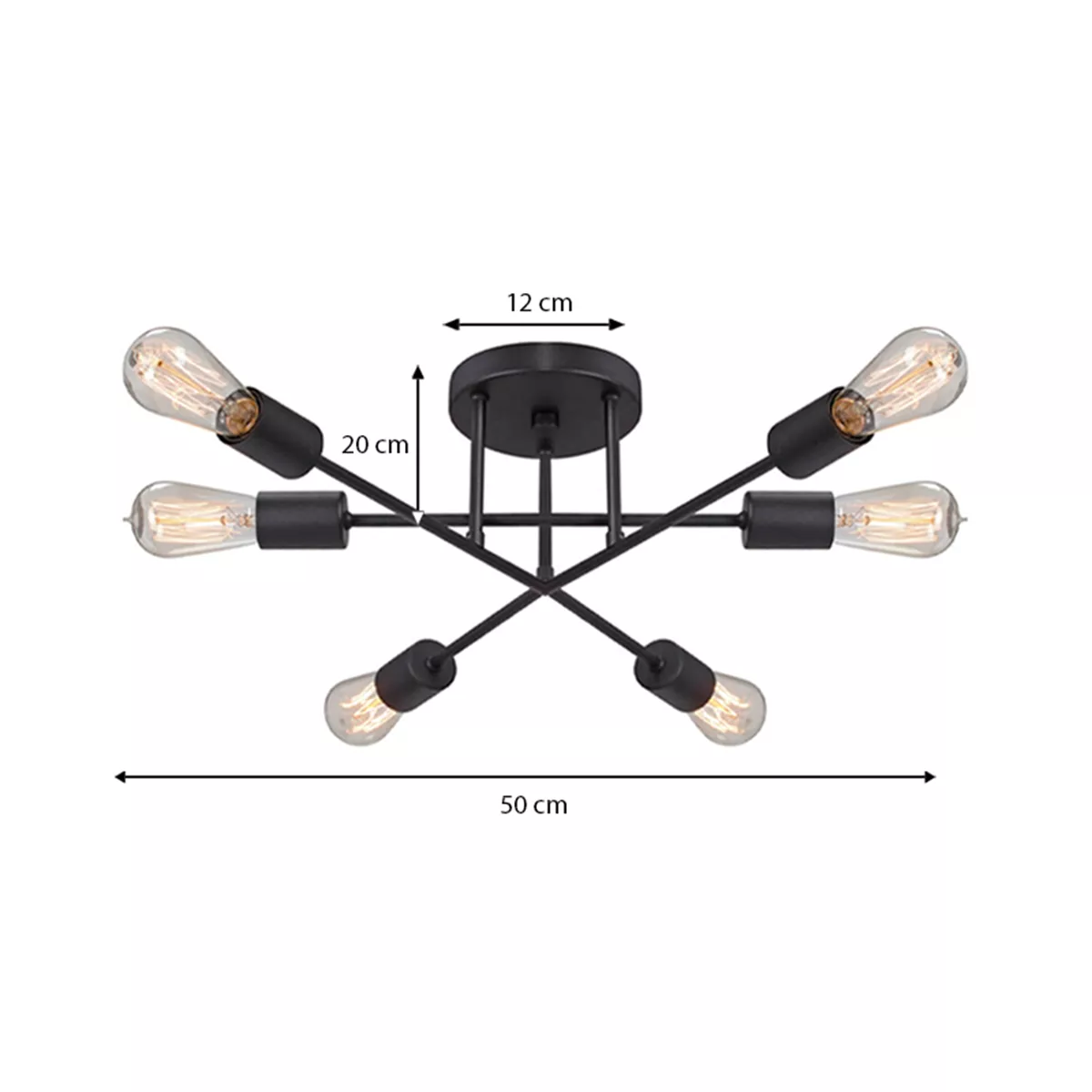 Φωτιστικό οροφής Helga Megapap E27 μεταλλικό εξάφωτο χρώμα μαύρο 50x12x20εκ.