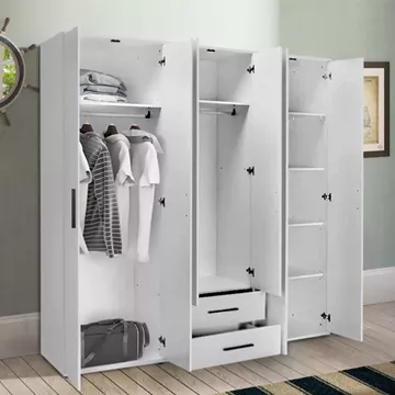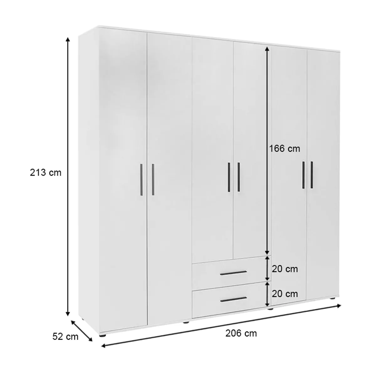 Ντουλάπα ρούχων Bianco Megapap εξάφυλλη χρώμα λευκό 206x52x213εκ.