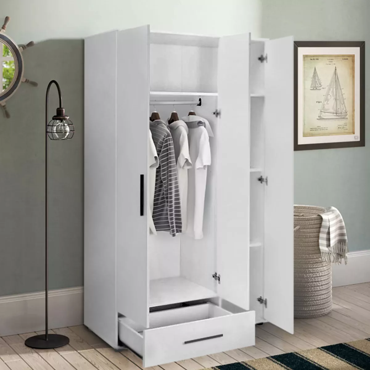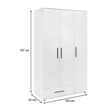 Ντουλάπα ρούχων Bianco Megapap τρίφυλλη χρώμα λευκό 103x52x187εκ.
