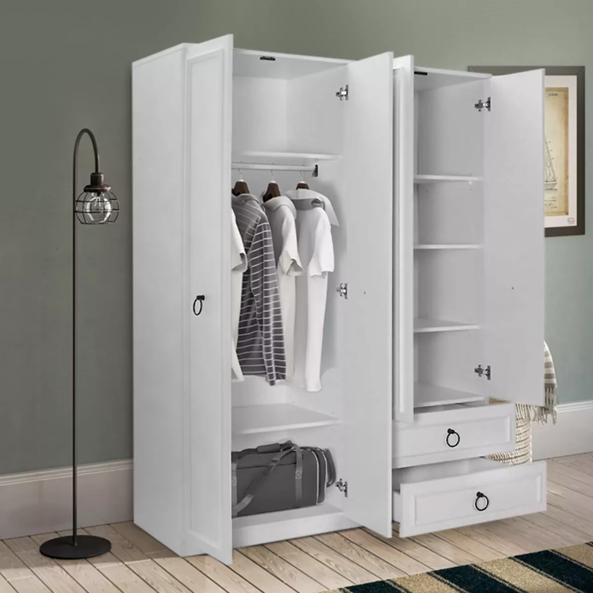 Ντουλάπα ρούχων Hampton Megapap τετράφυλλη χρώμα λευκό 140x52x185εκ.
