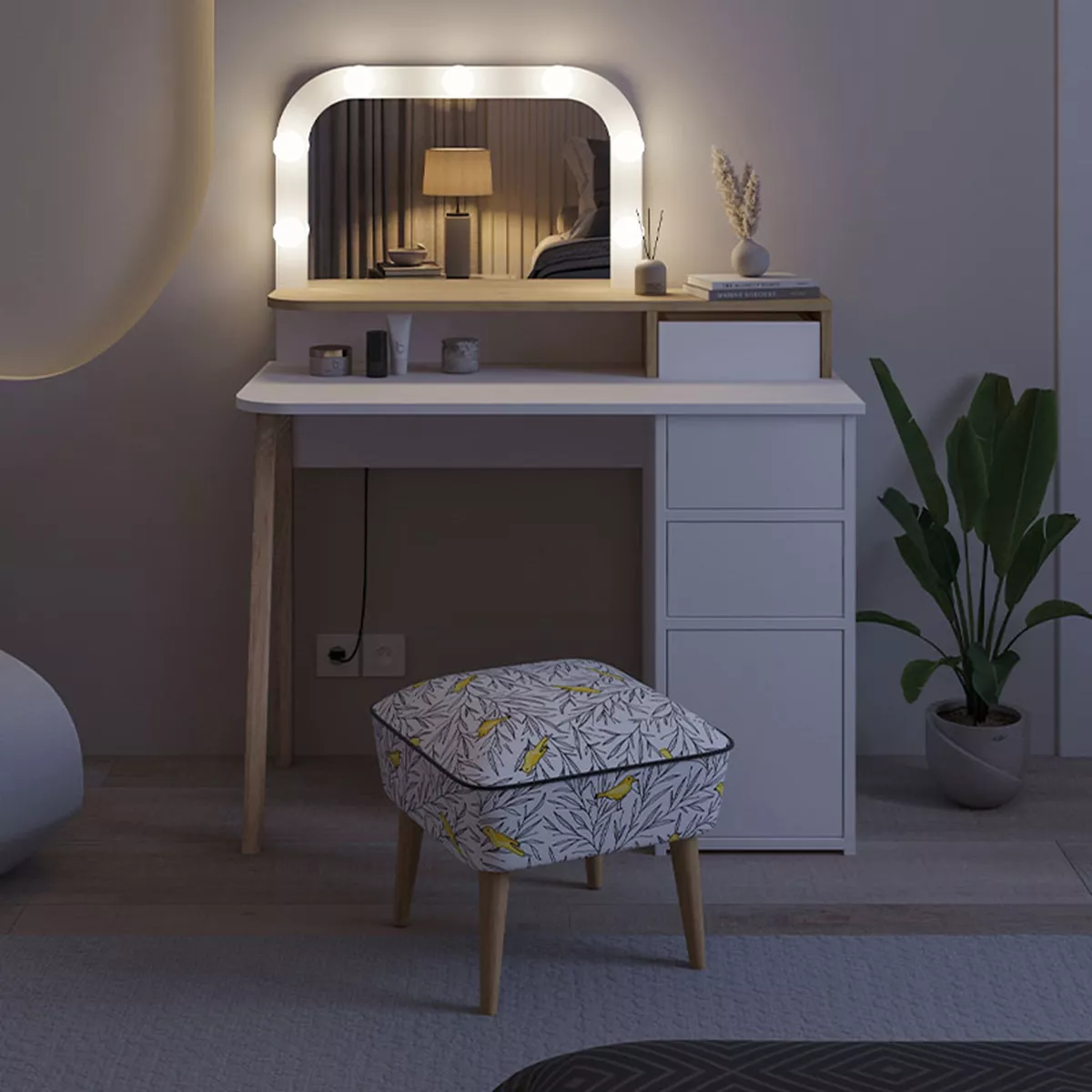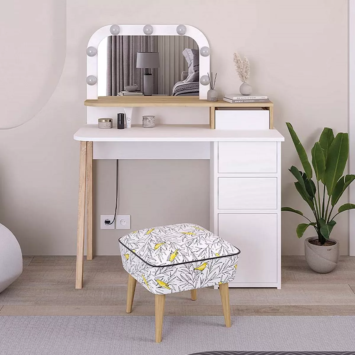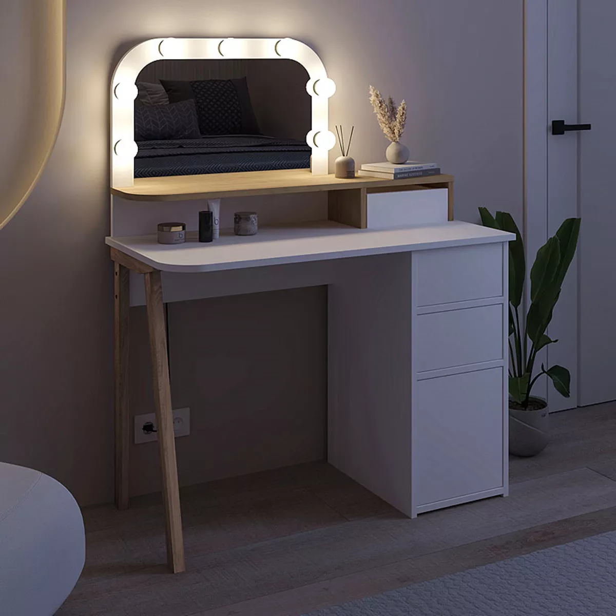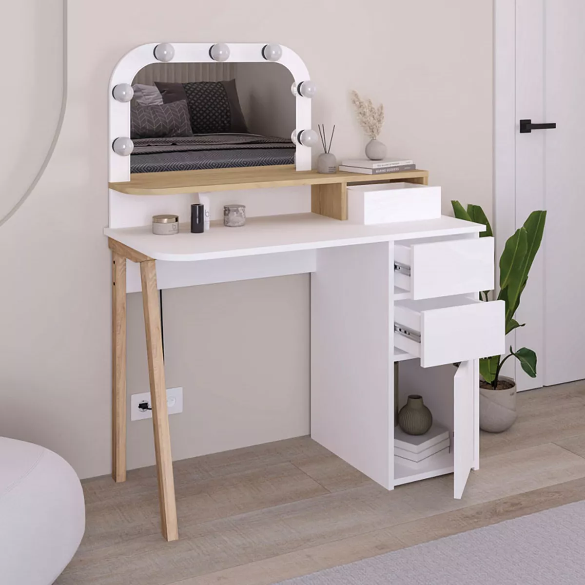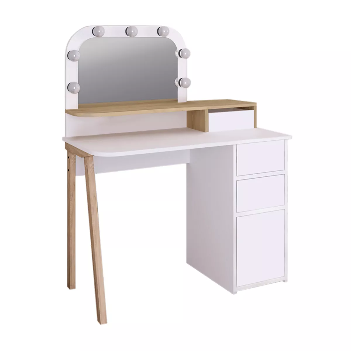 Τουαλέτα με καθρέπτη Avien Megapap χρώμα λευκό - φυσικό οξιάς 105x51,1x131εκ.