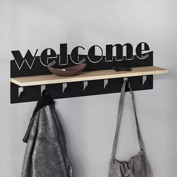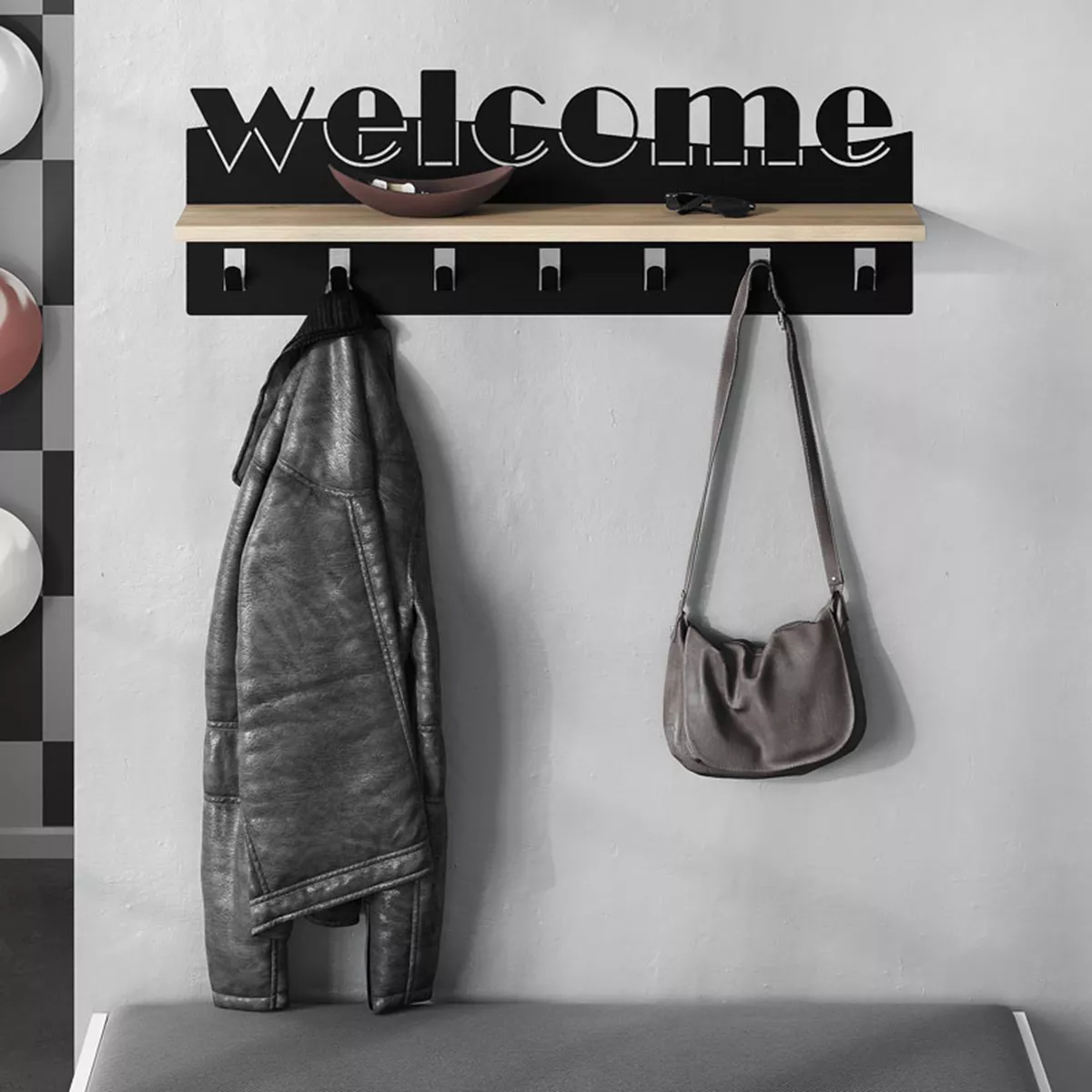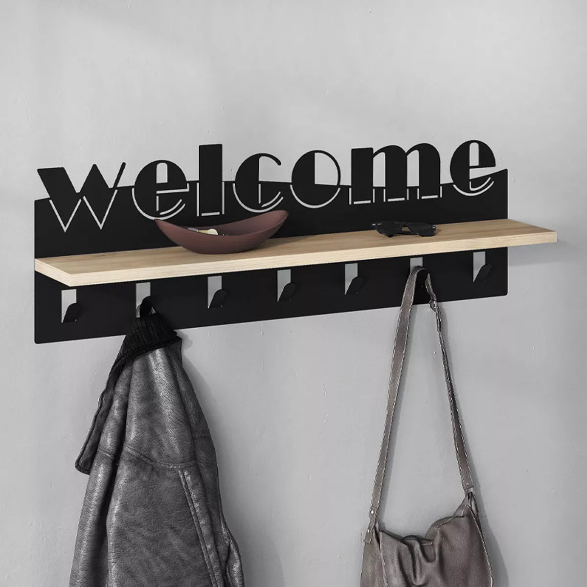 Κρεμάστρα τοίχου Welcome Megapap χρώμα μαύρο - sapphire oak 86x15,2x29εκ.