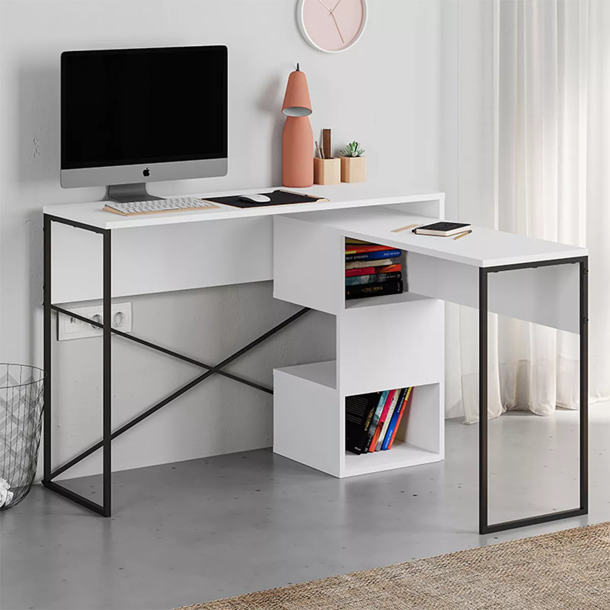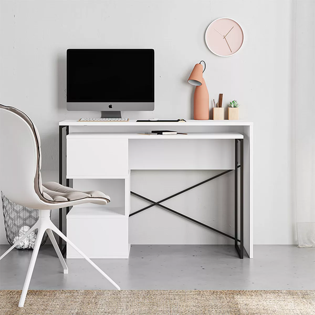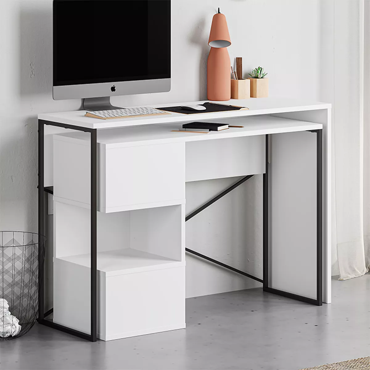Γραφείο εργασίας πολυμορφικό Badau Megapap χρώμα λευκό 110x37,2x77εκ.