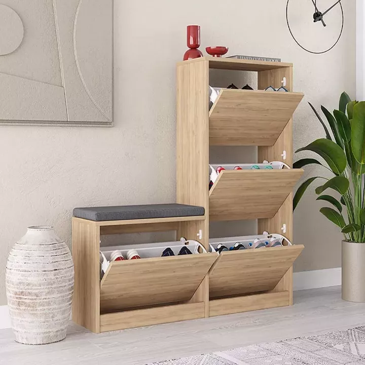 Παπουτσοθήκη μελαμίνης Dude Megapap χρώμα φυσικό οξιάς 104,8x26x118,5εκ.