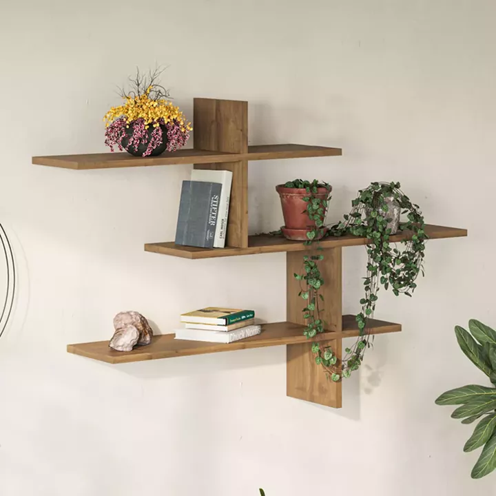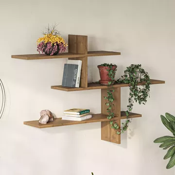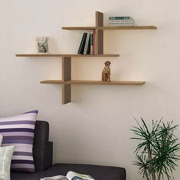 Ραφιέρα τοίχου Leo Megapap χρώμα ανοιχτό καρυδί 123x22x80εκ.