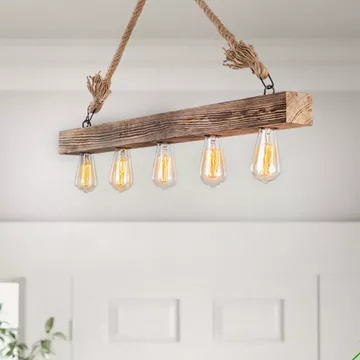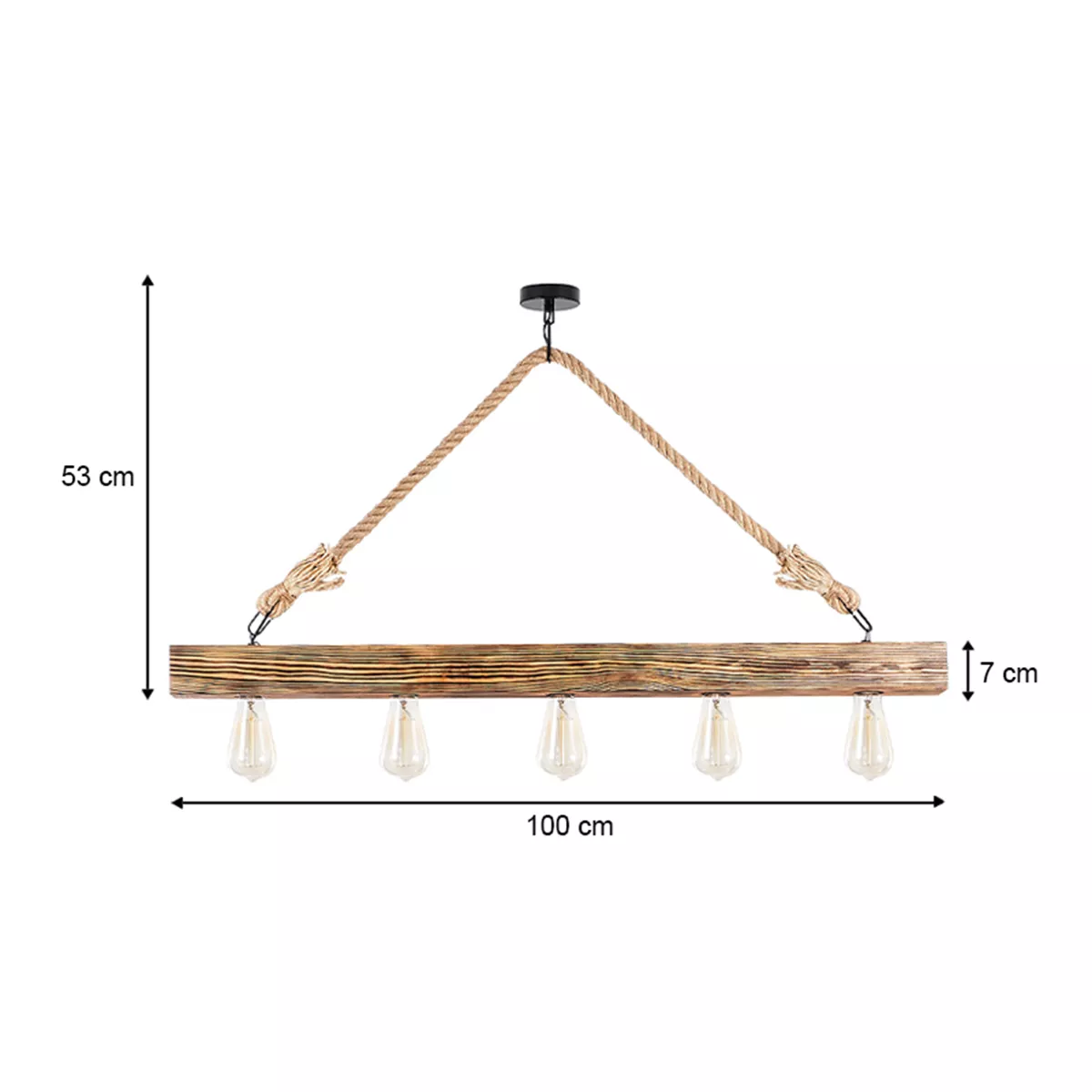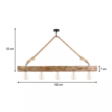 Φωτιστικό οροφής Erebos Megapap E27 ξύλο - σχοινί πεντάφωτο χρώμα φυσικό 100x7x53εκ.