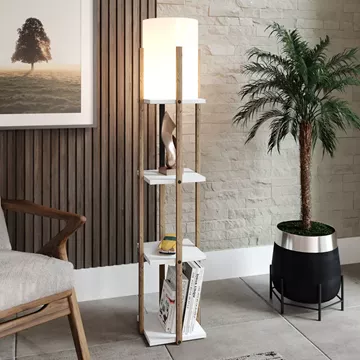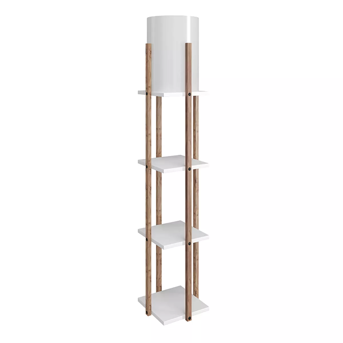 Φωτιστικό δαπέδου Nora Megapap MDF - υφασμάτινο χρώμα λευκό - φυσικό 21x21x135εκ.