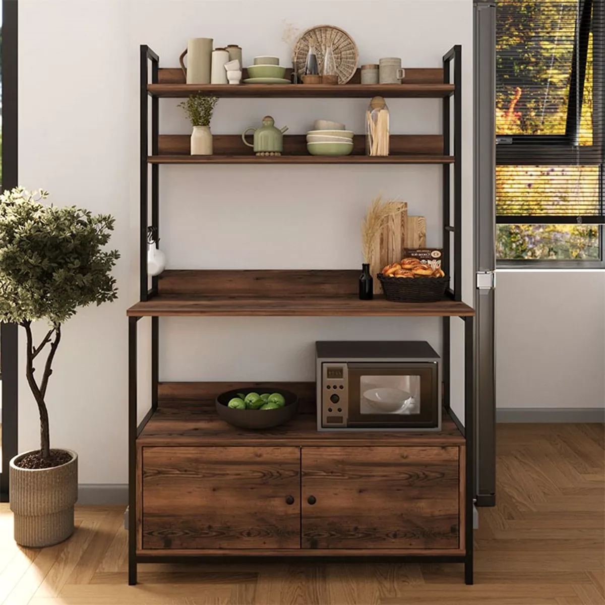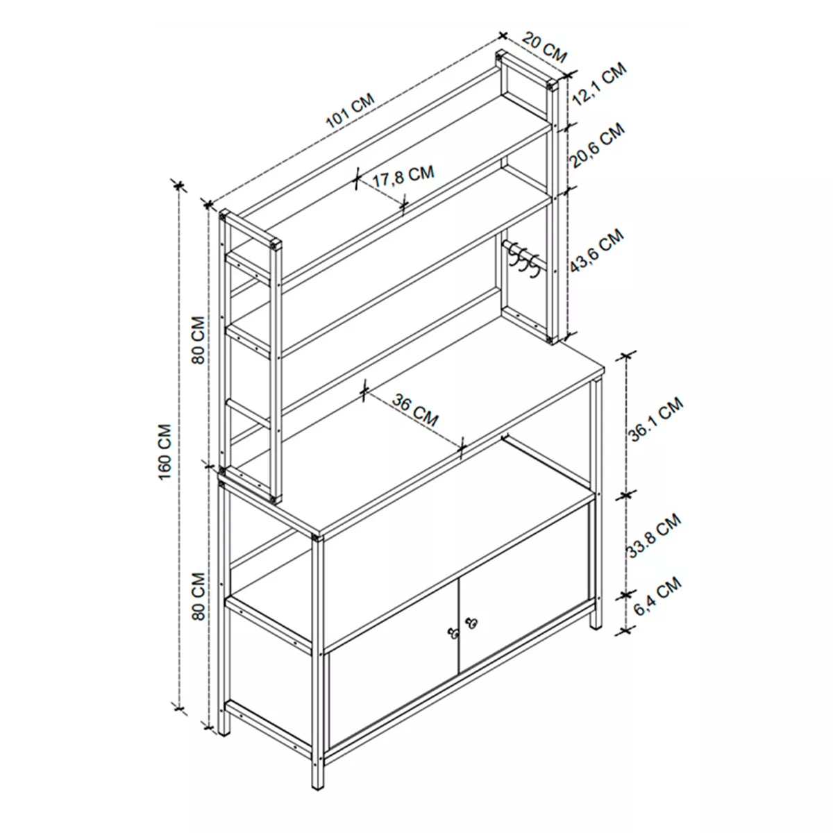 Έπιπλο κουζίνας Severo Megapap μεταλλικό - μελαμίνης χρώμα μαύρο - καπνιστή καρυδιά 101x36x160εκ.