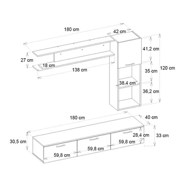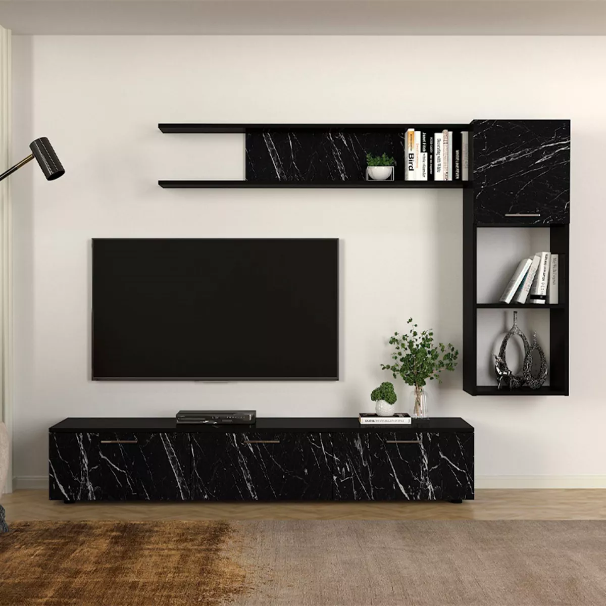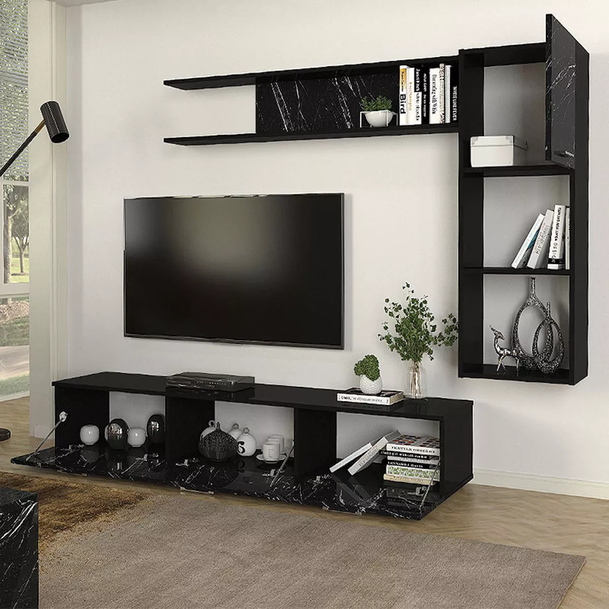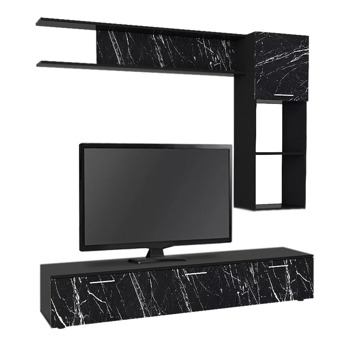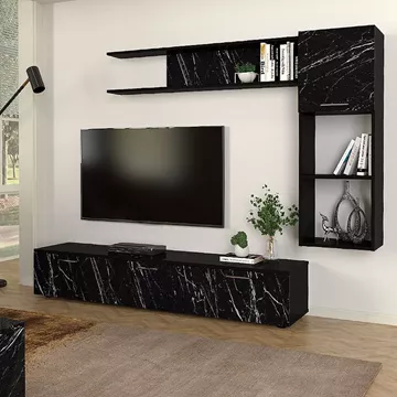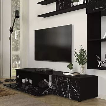 Σύνθεση τηλεόρασης Darcy Megapap χρώμα μαύρο εφέ μαρμάρου - μαύρο 180x40x33εκ.