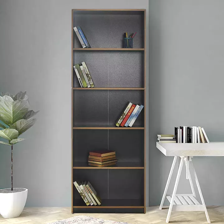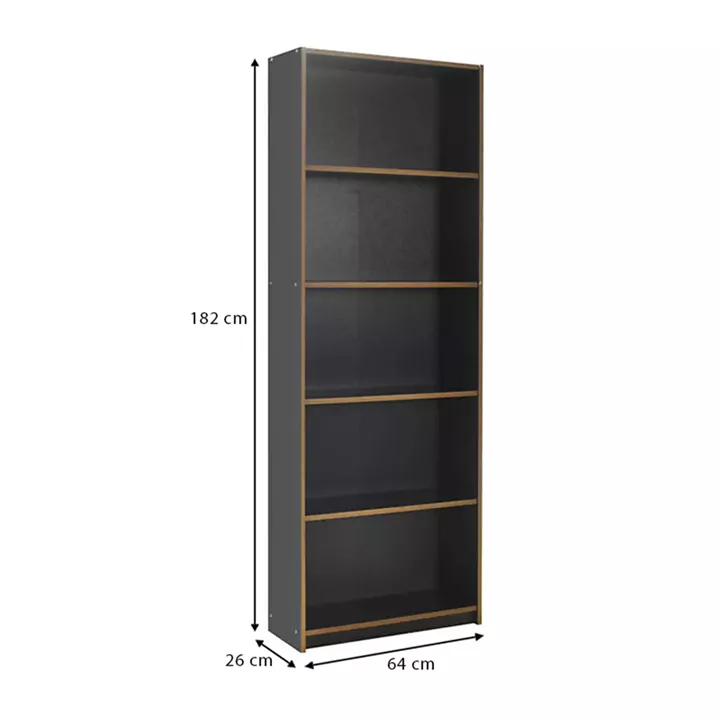 Βιβλιοθήκη Max Megapap χρώμα ανθρακί 64x26x182εκ.