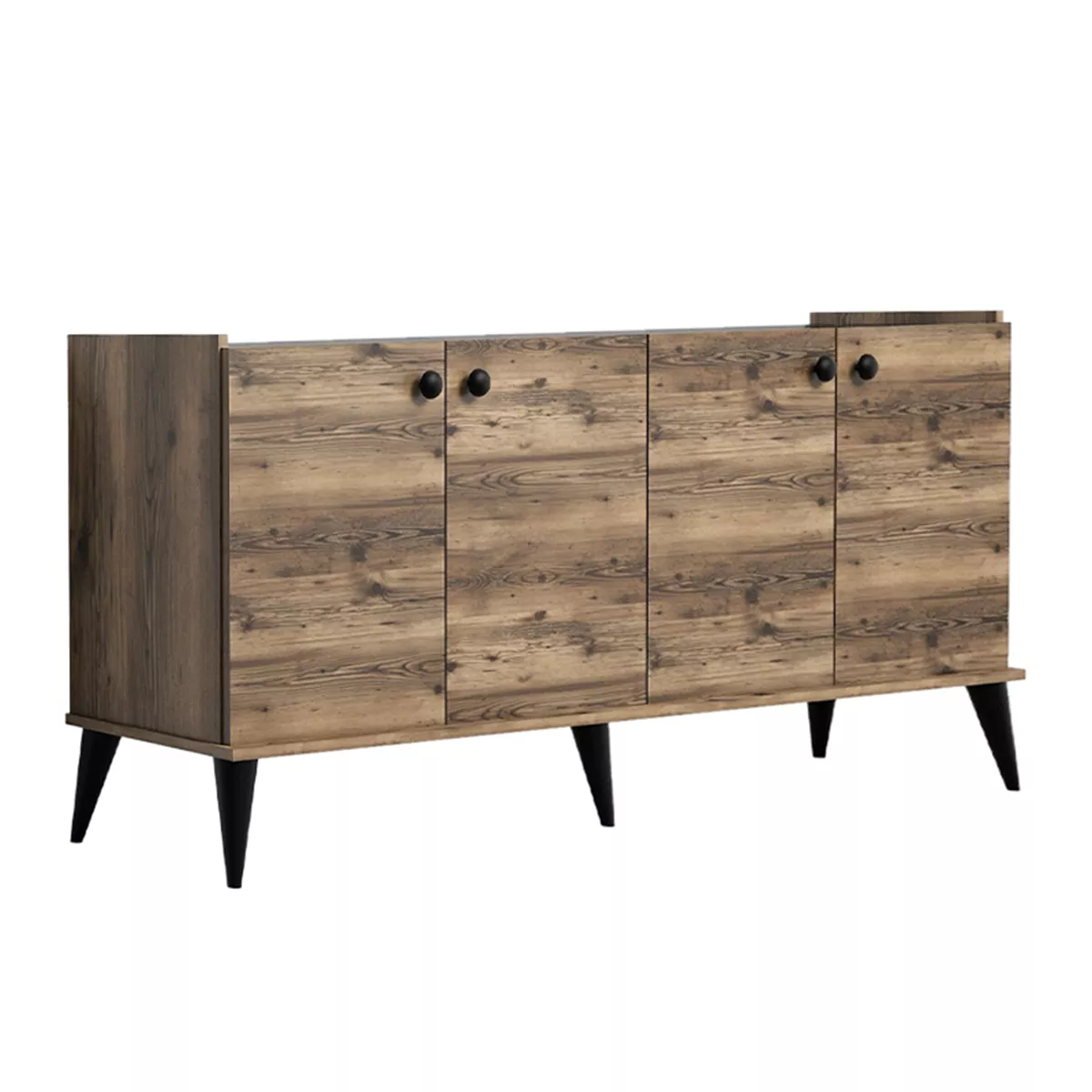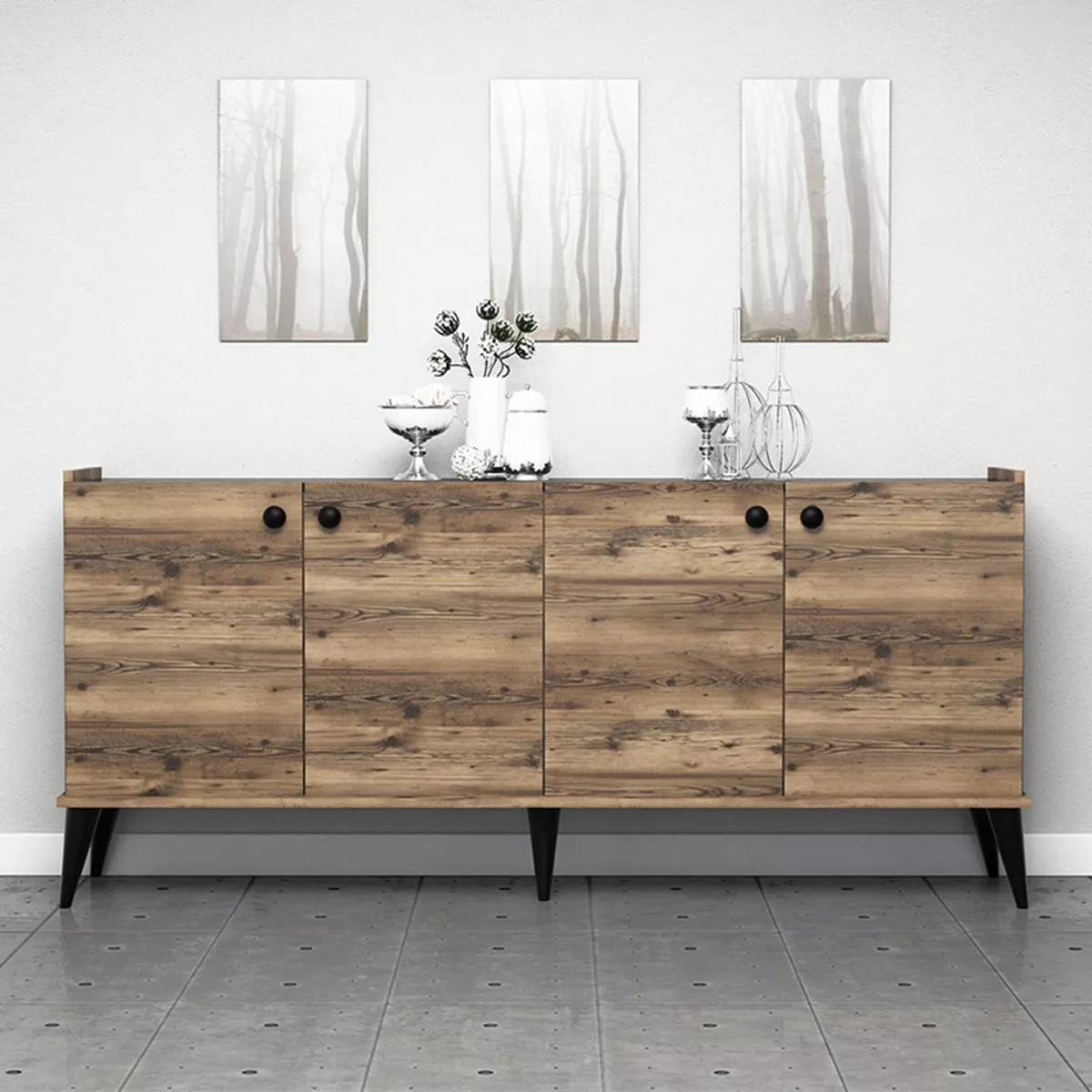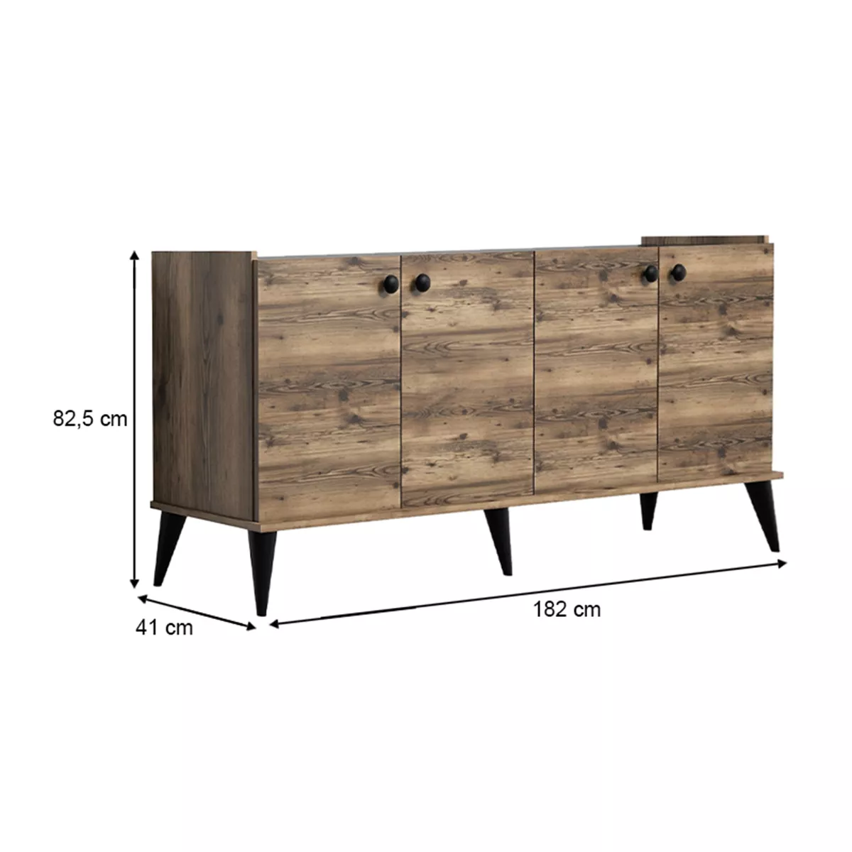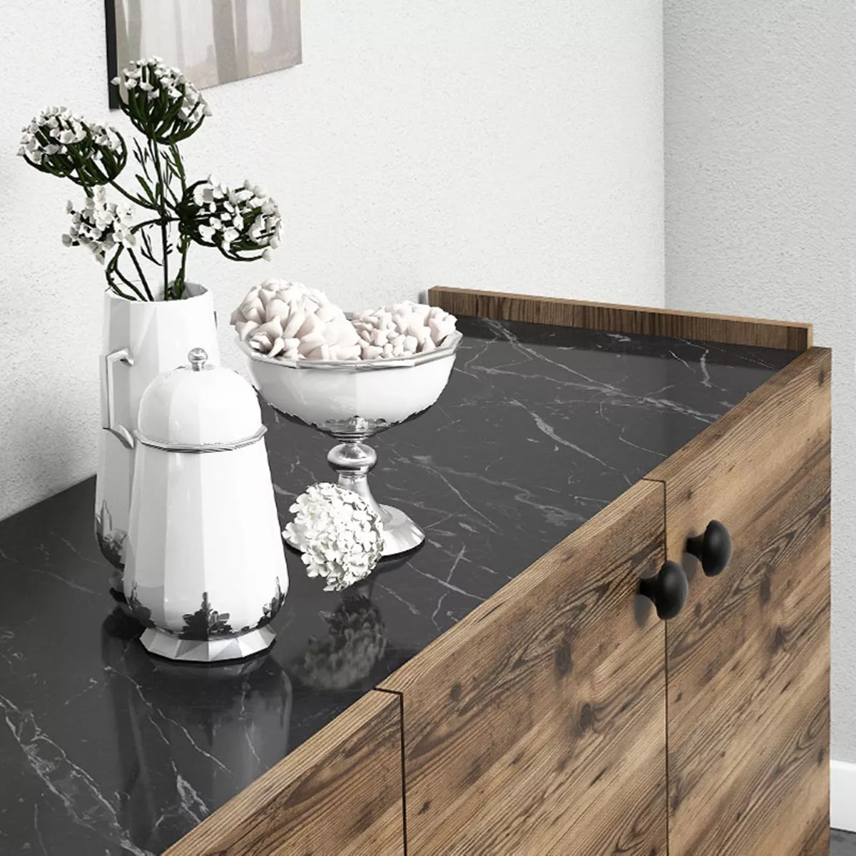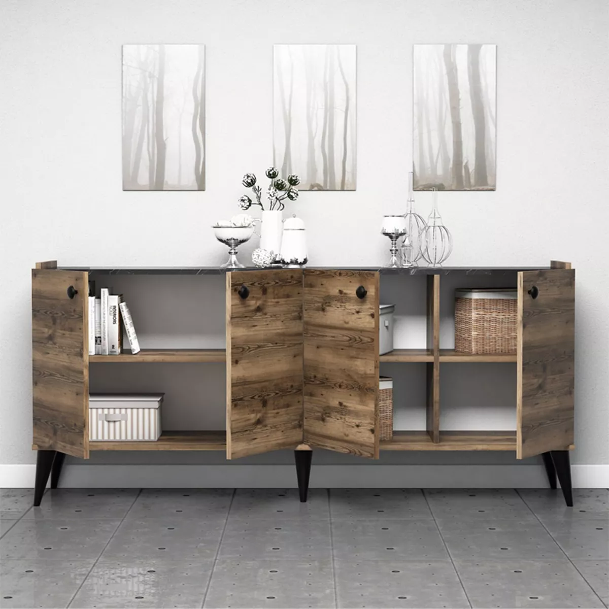 Μπουφές Lidya Megapap χρώμα καρυδί - μαύρο εφέ μαρμάρου 182x41x82,5εκ.