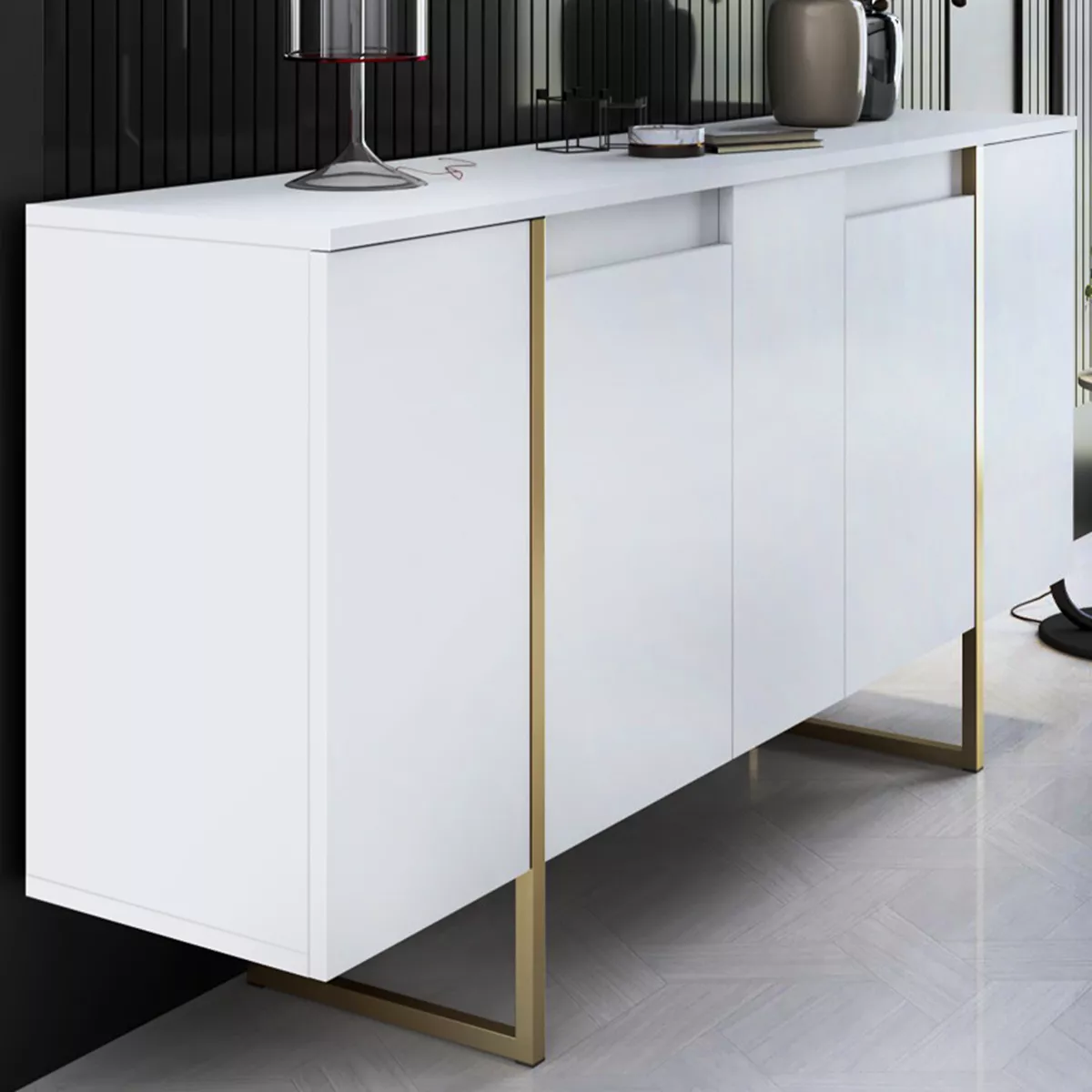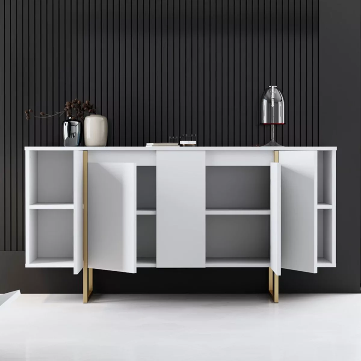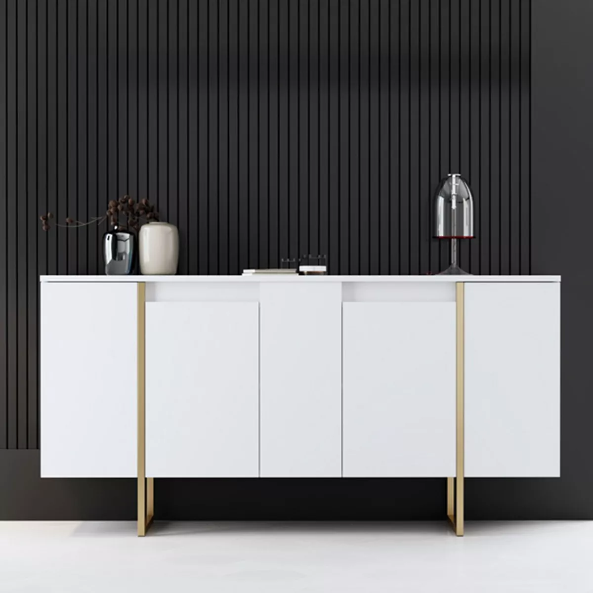 Μπουφές Luxe Megapap χρώμα λευκό - χρυσό 160x35x80εκ.