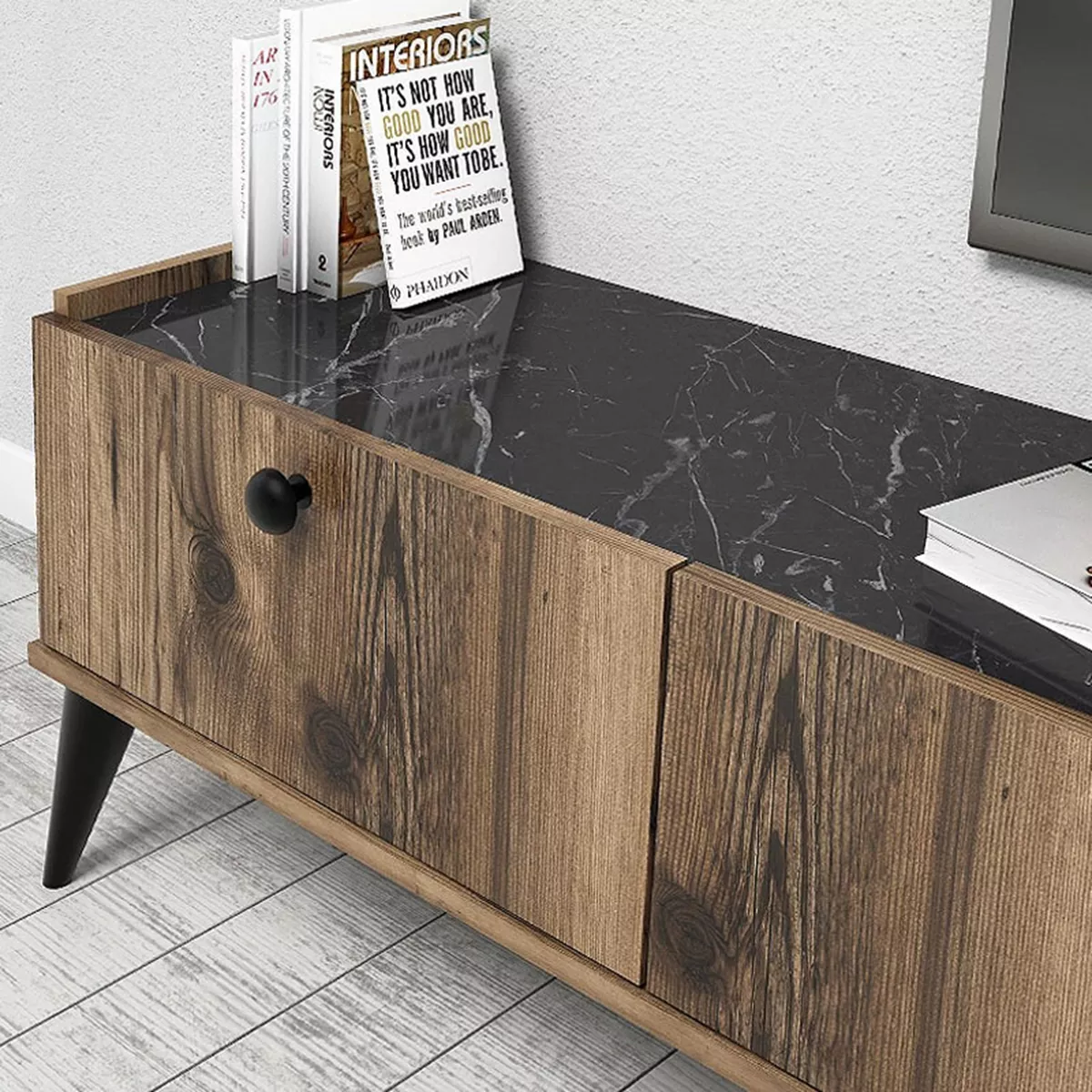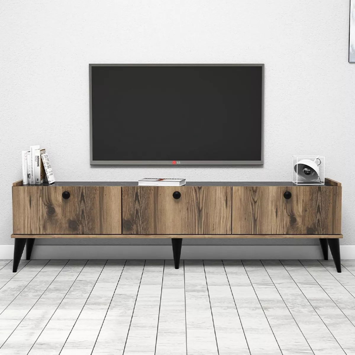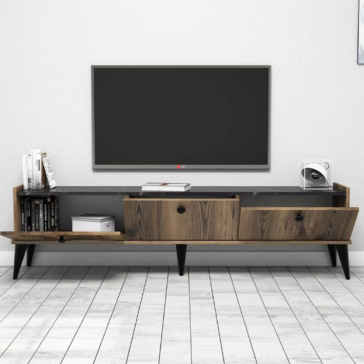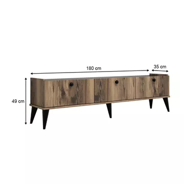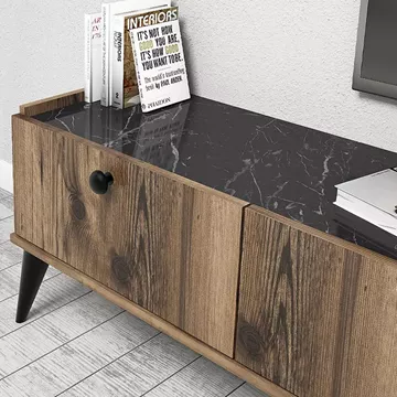 Έπιπλο τηλεόρασης Lidya Megapap χρώμα καρυδί - μαύρο εφέ μαρμάρου 180x35x49εκ.