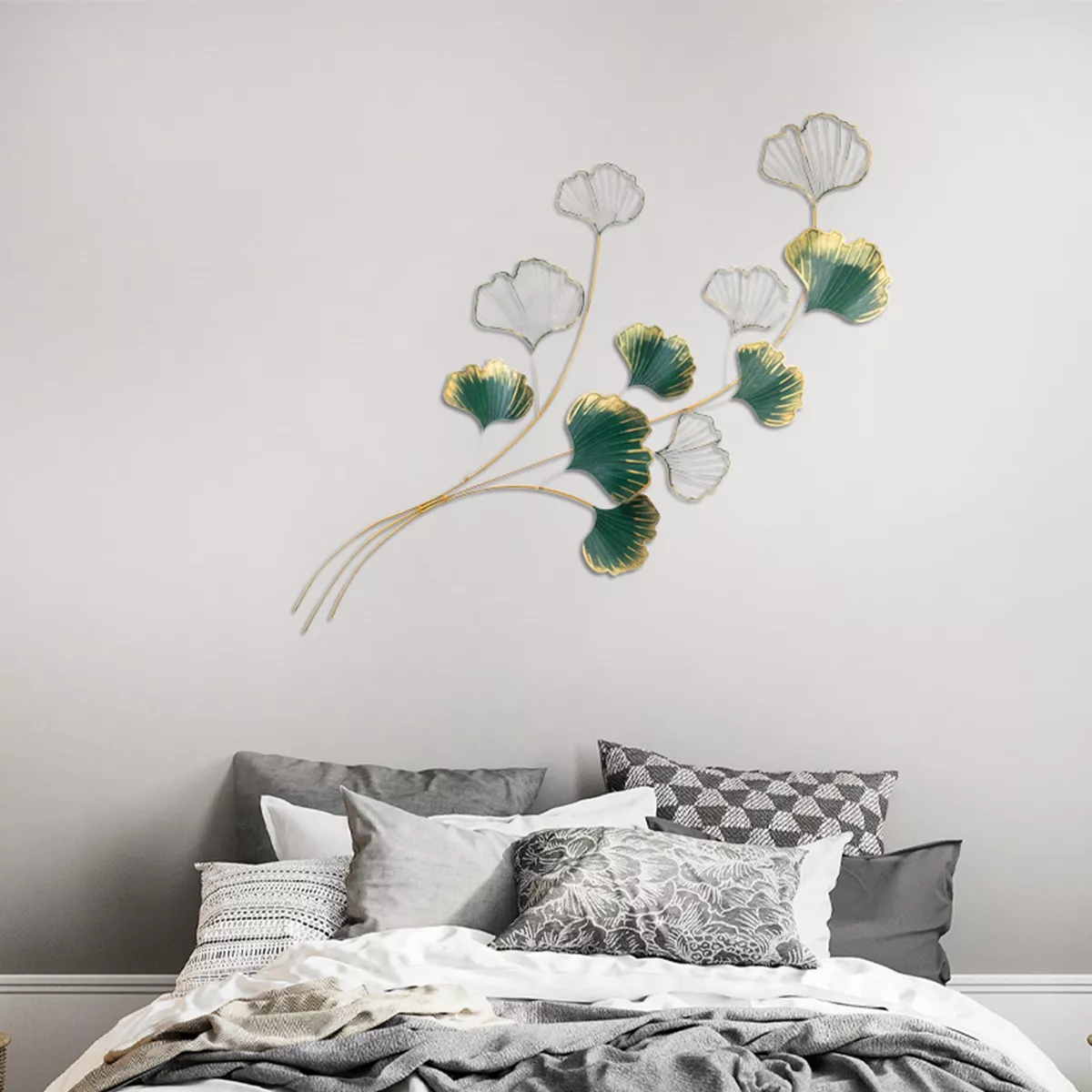 Διακοσμητικό τοίχου Flower Megapap μεταλλικό χρώμα χρυσό - πράσινο 120x100εκ.