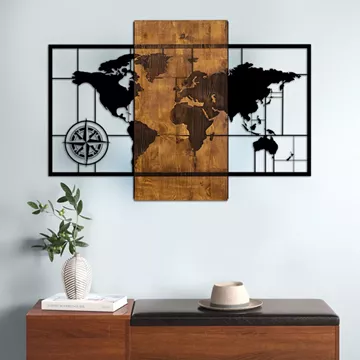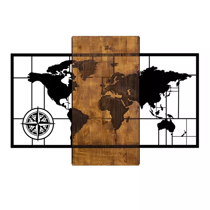 Διακοσμητικό τοίχου World Map Megapap ξύλινο - μεταλλικό χρώμα καρυδί - μαύρο 85x3x58εκ.