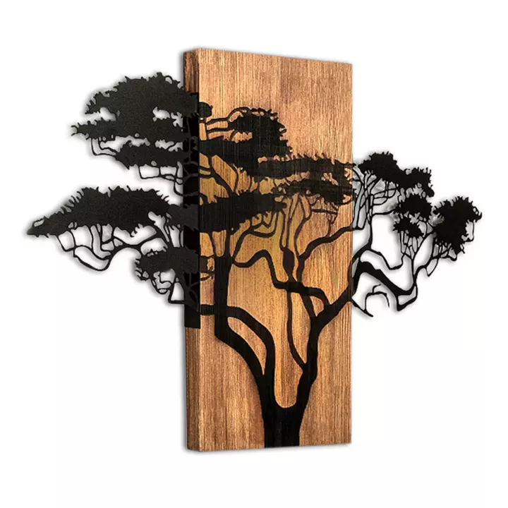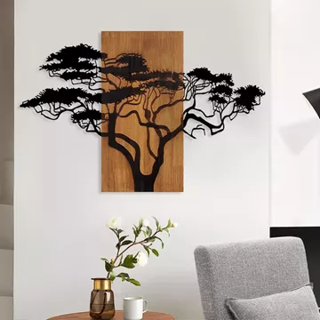 Διακοσμητικό τοίχου Acacia Tree Megapap ξύλινο - μεταλλικό χρώμα καρυδί - μαύρο 90x3x58εκ.