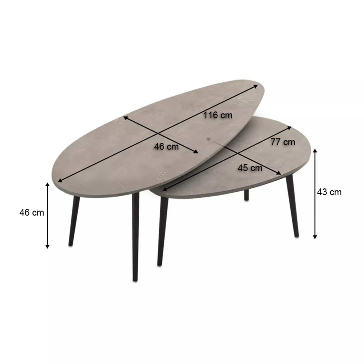 Τραπεζάκι σαλονιού σετ 2 τμχ Elips Megapap χρώμα γκρι ρετρό 116x46x46εκ.