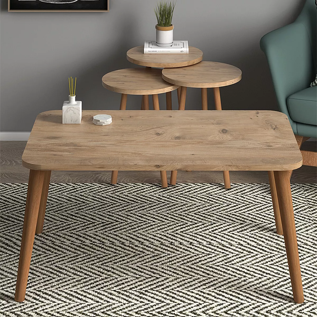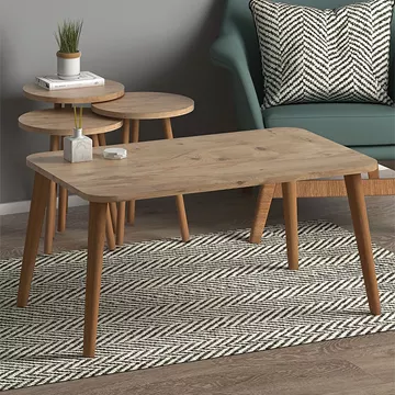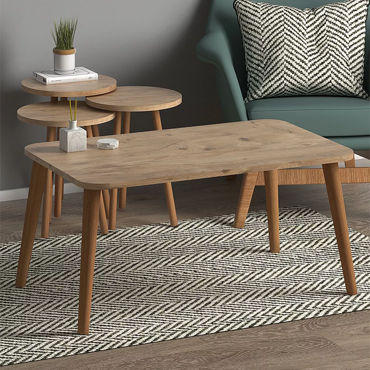 Τραπεζάκι σαλονιού σετ 4 τμχ Soul Megapap χρώμα oak 90x55x43εκ.