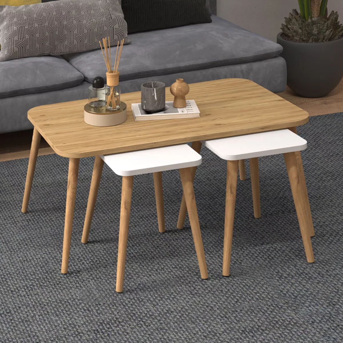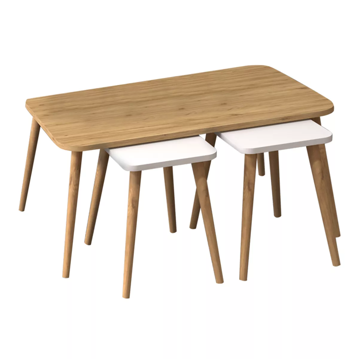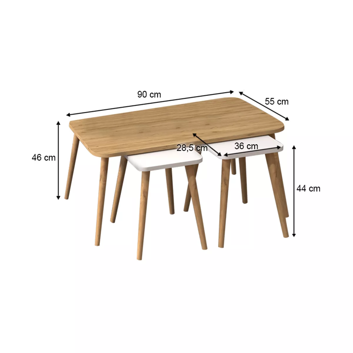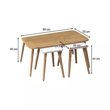 Τραπεζάκι σαλονιού σετ 3 τμχ Oliva Megapap χρώμα oak - λευκό 90x55x46εκ.