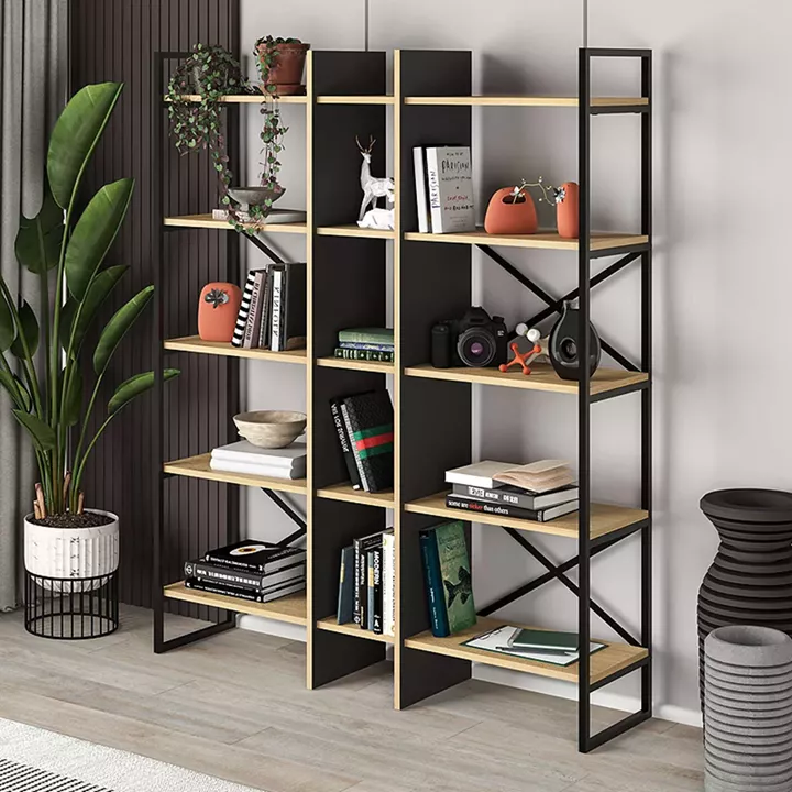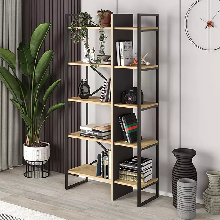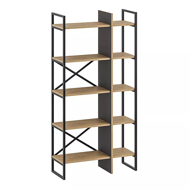 Βιβλιοθήκη Detroit Megapap χρώμα sapphire oak - silky black 87,5x35,2x175εκ.