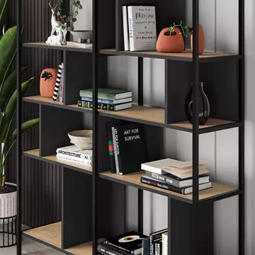 Βιβλιοθήκη Maxi Megapap χρώμα sapphire oak - silky black 144x35x175εκ.