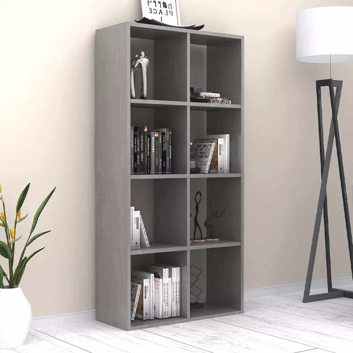 Βιβλιοθήκη Anser Megapap χρώμα γκρι σκυροδέματος 69,8x29x142εκ.