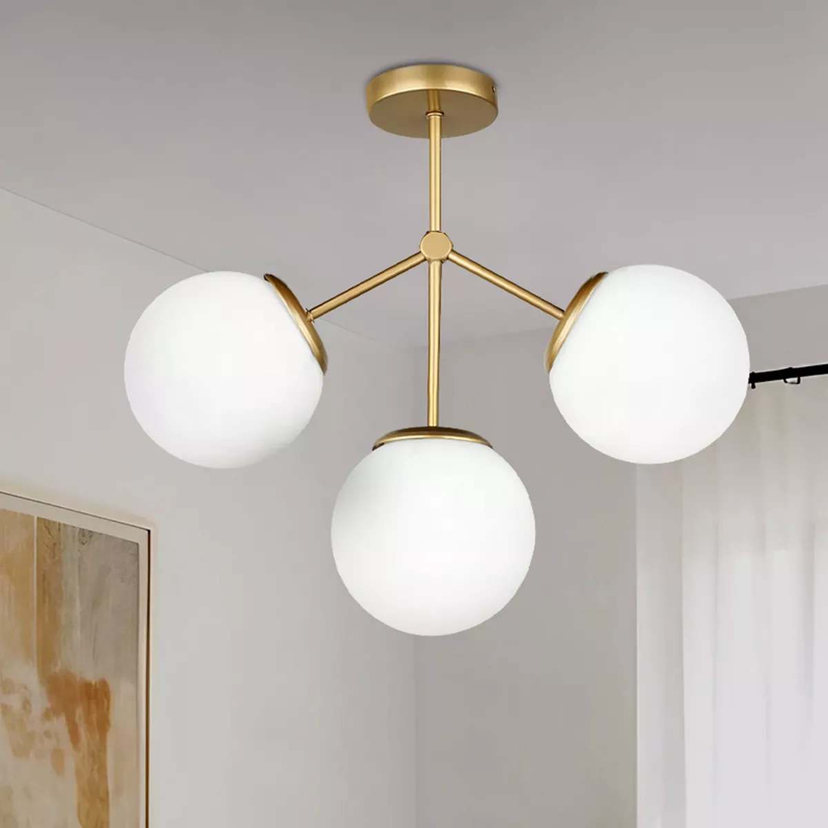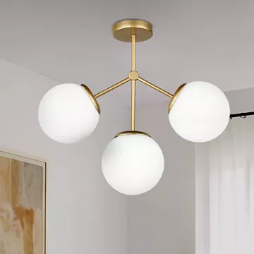 Φωτιστικό οροφής Alison Megapap Ε27 μεταλλικό - γυάλινο τρίφωτο χρώμα χρυσό Ø50x45εκ.
