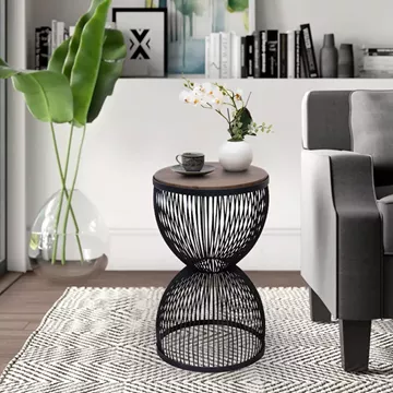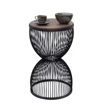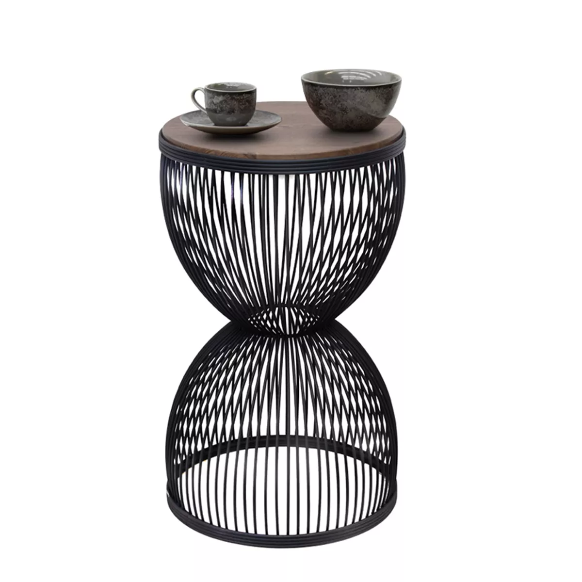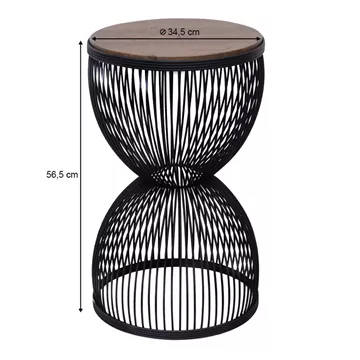 Τραπεζάκι βοηθητικό Stella Megapap μεταλλικό - Mdf χρώμα μαύρο - καρυδί Ø34,5x56,5εκ.