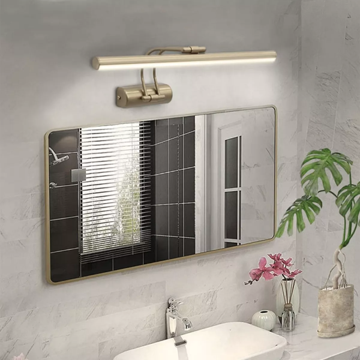 Απλίκα καθρέπτη μπάνιου LED Strop Megapap μεταλλική χρώμα χρυσό 35εκ.