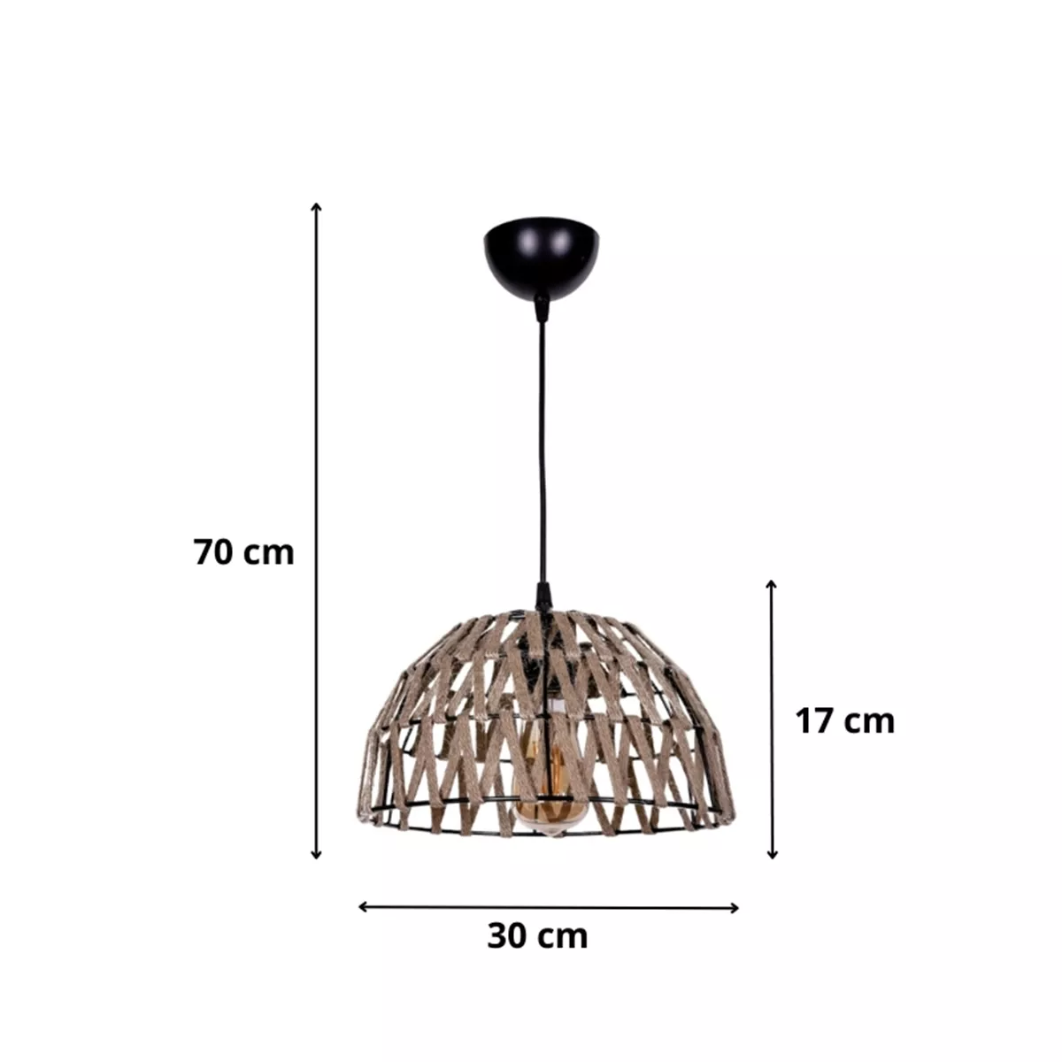 Φωτιστικό οροφής Simoza Megapap E27 μεταλλικό - σχοινί μονόφωτο χρώμα φυσικό Ø30x70εκ.