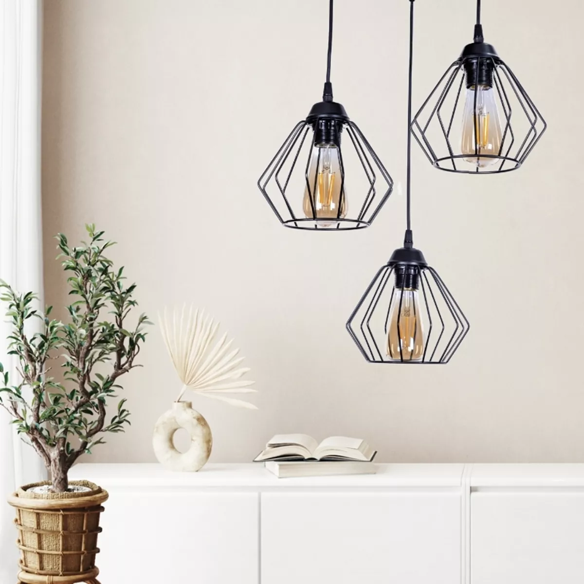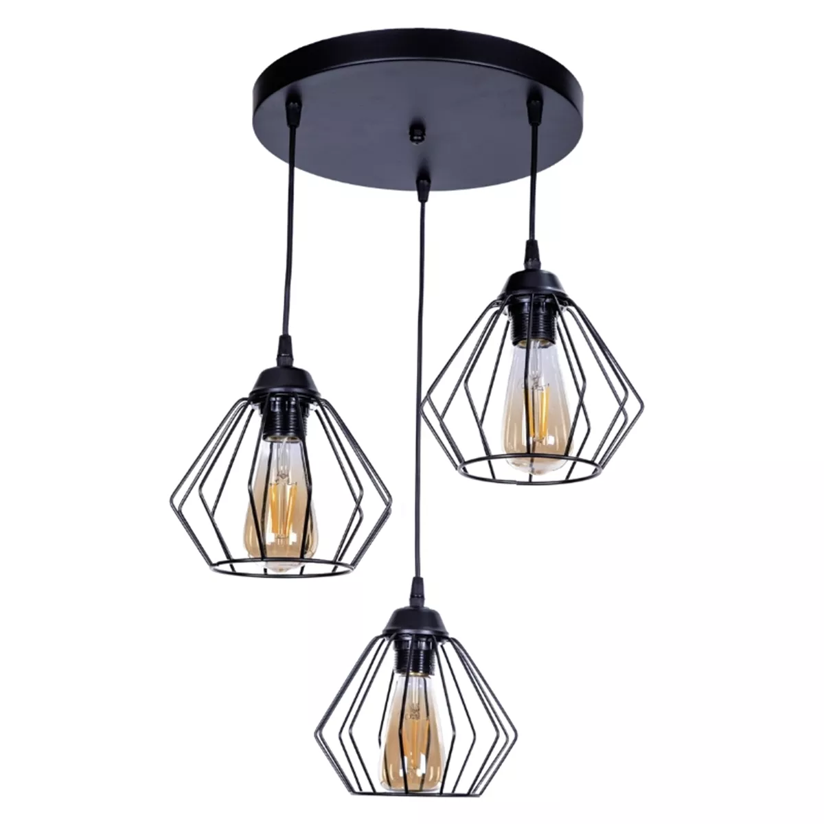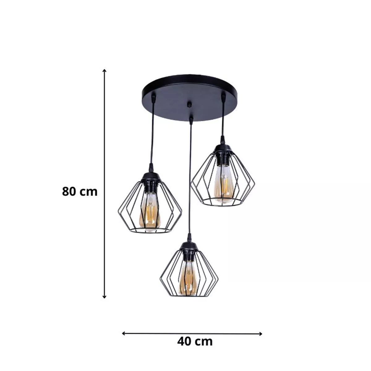 Φωτιστικό οροφής Bart Megapap E27 μεταλλικό τρίφωτο χρώμα μαύρο 40x40x80εκ.