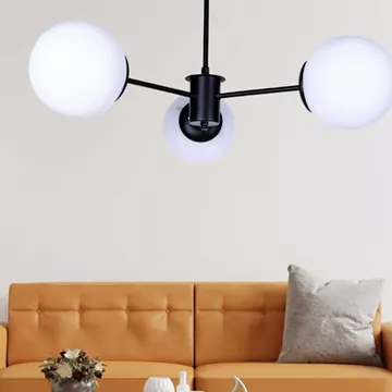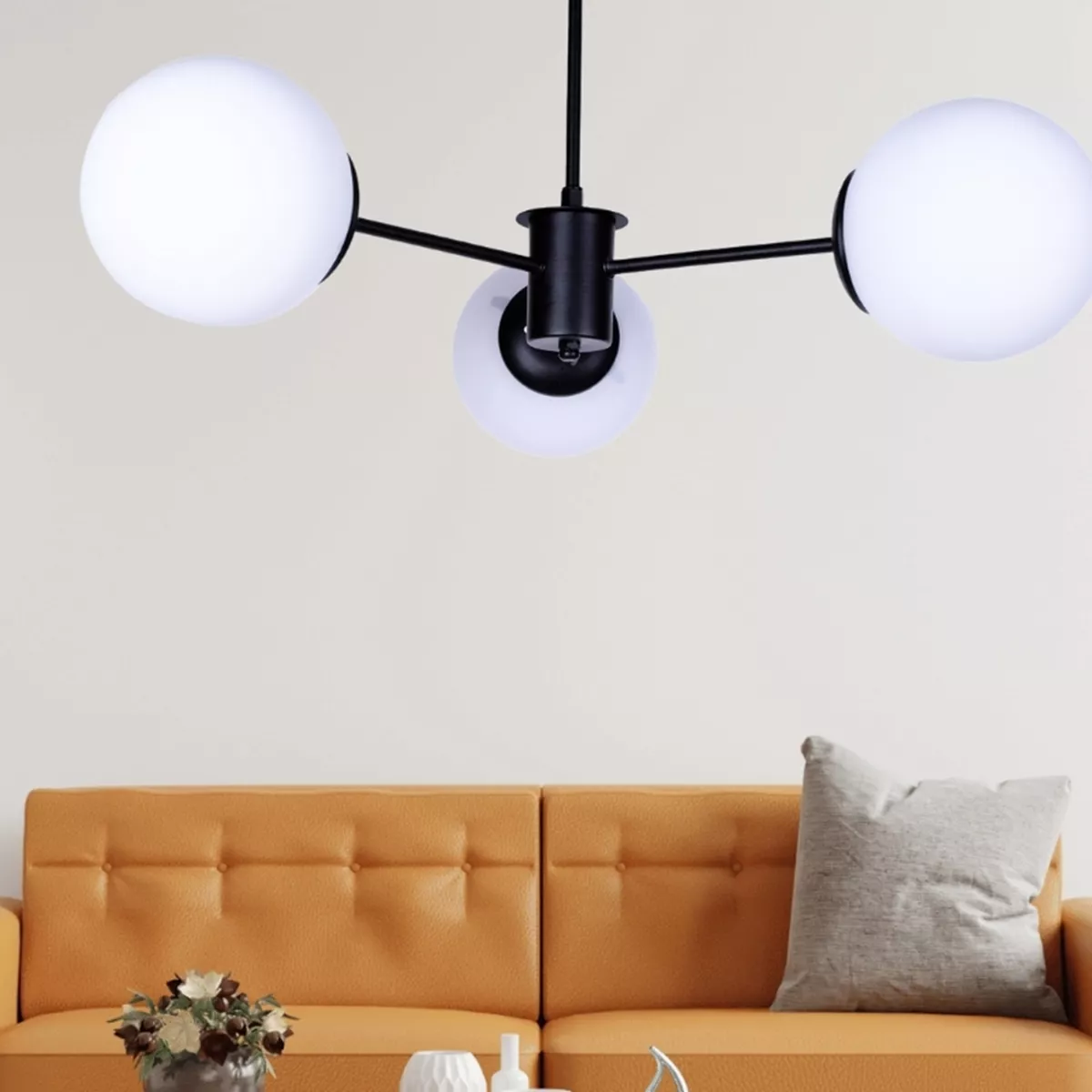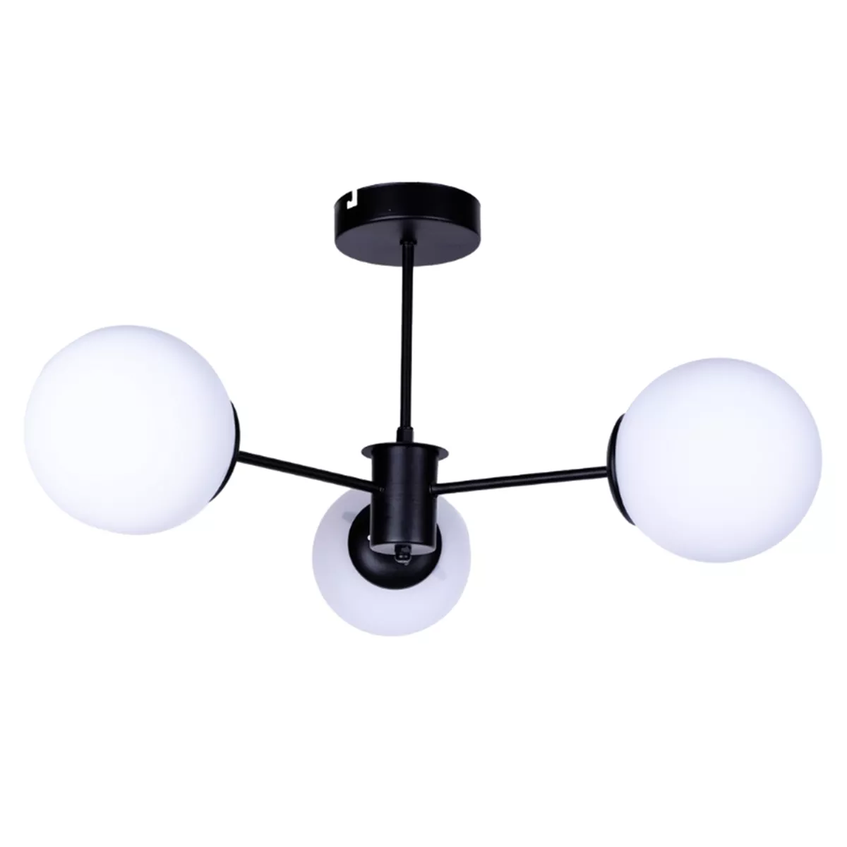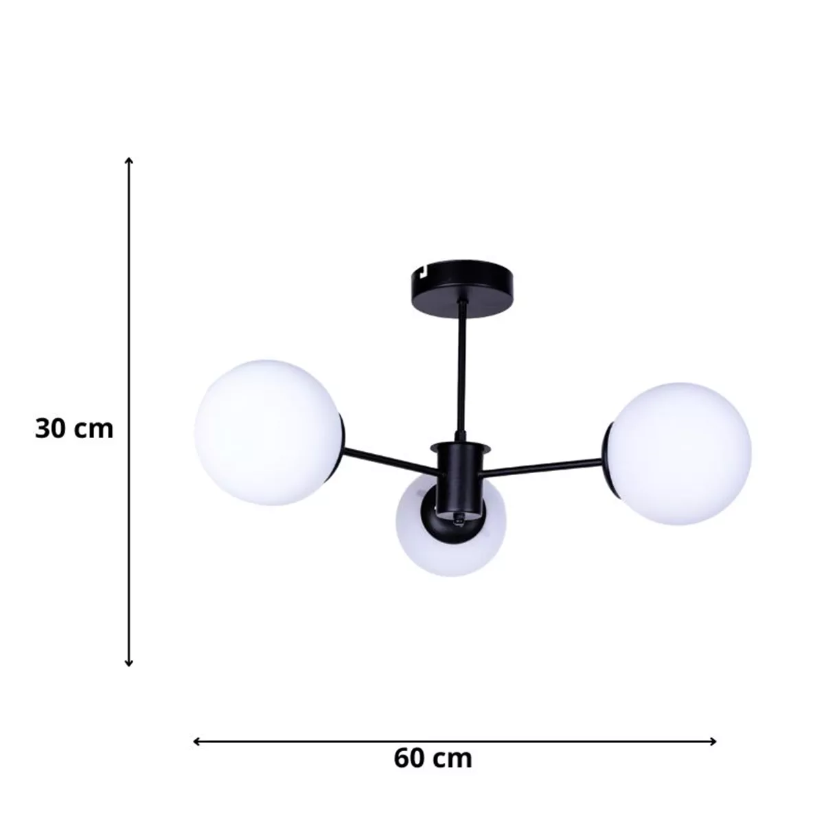 Φωτιστικό οροφής Fune Megapap E27 μεταλλικό - γυάλινο τρίφωτο χρώμα μαύρο - λευκό Ø60x30εκ.