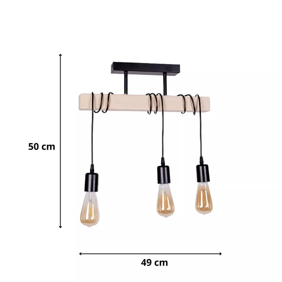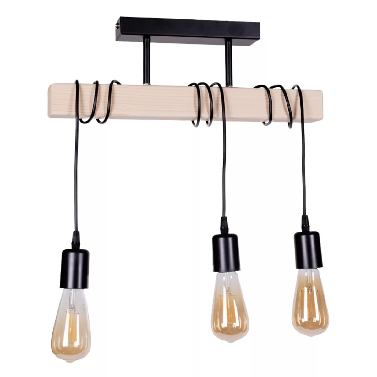 Φωτιστικό οροφής Radovan Megapap E27 ξύλινο τρίφωτο χρώμα φυσικό - μαύρο 49x5x50εκ.