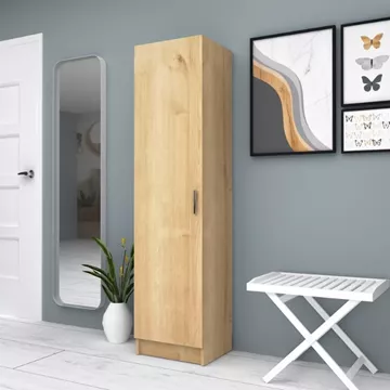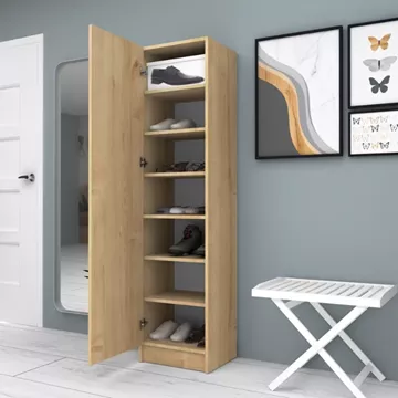 Ντουλάπα ρούχων - παπουτσοθήκη Petro Megapap μονόφυλλη χρώμα φυσικό οξιάς 45x38x180εκ.