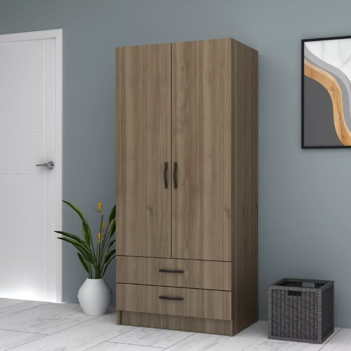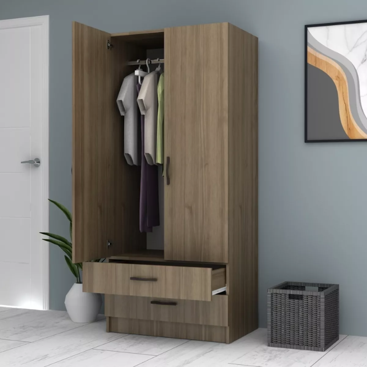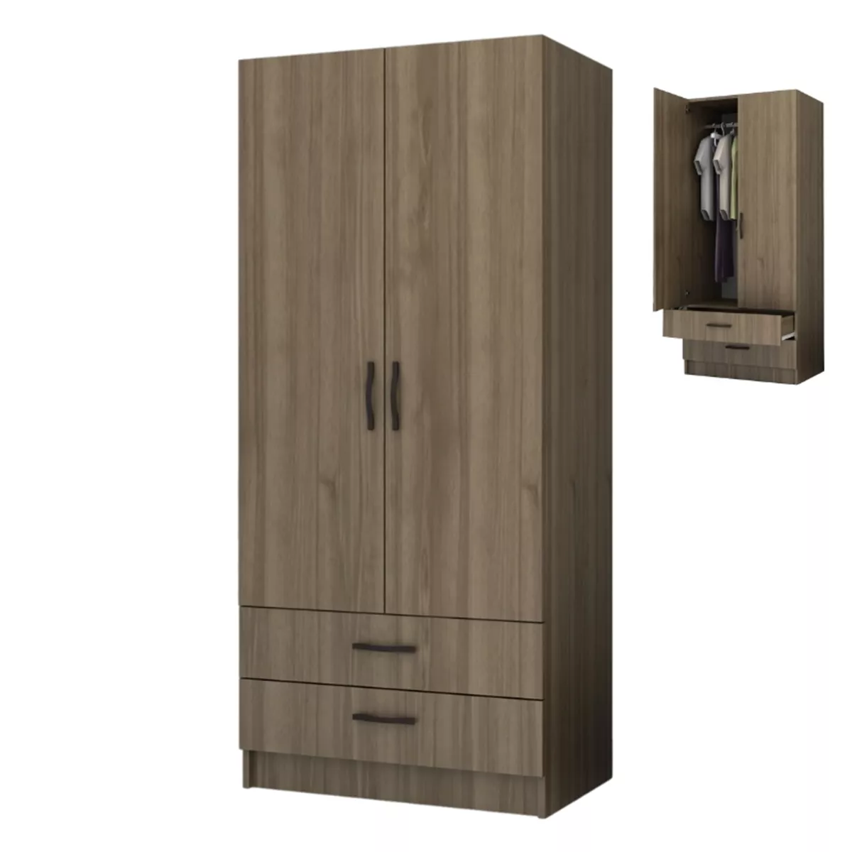 Ντουλάπα ρούχων Ricardo Megapap δίφυλλη χρώμα καρυδί 80x51,8x181εκ.