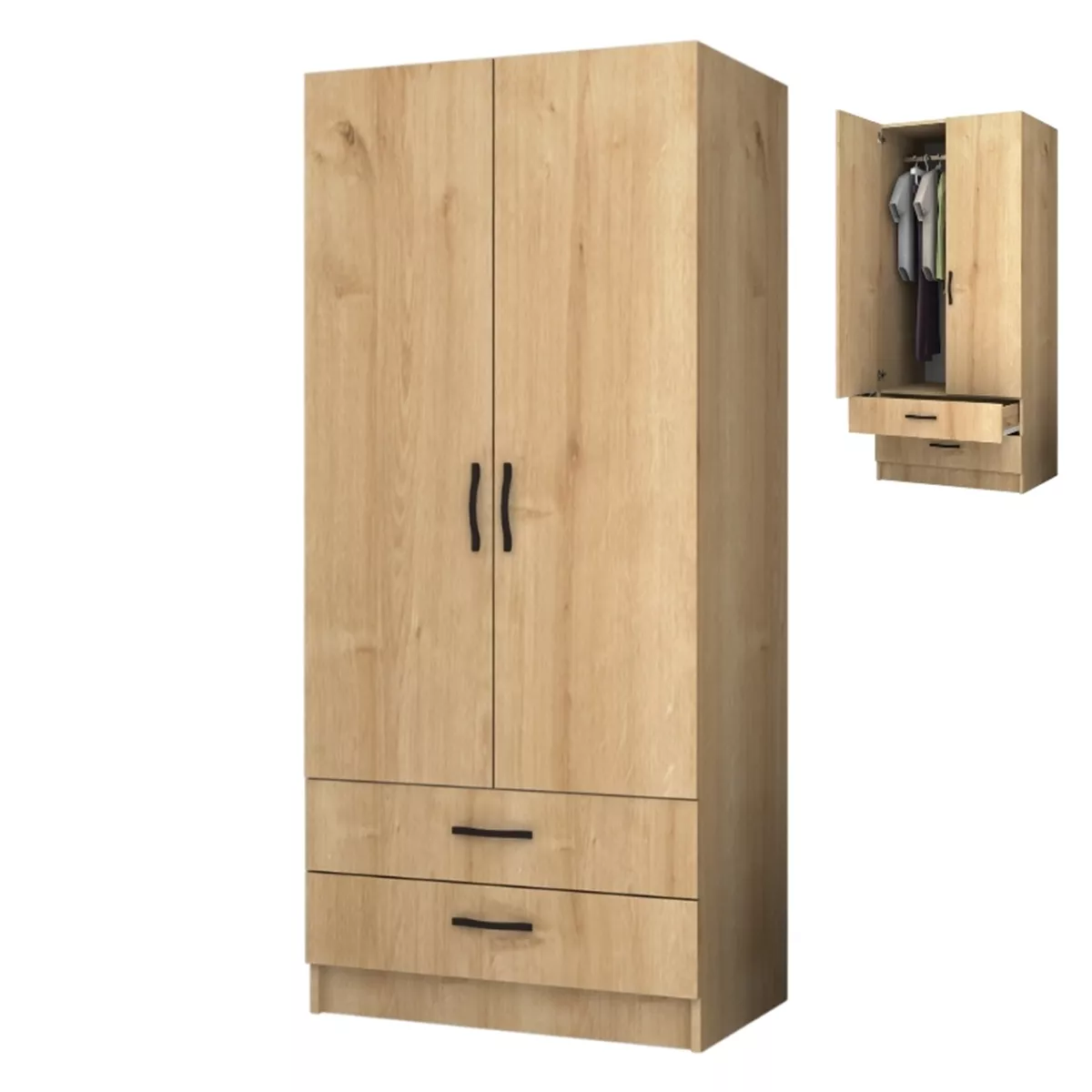 Ντουλάπα ρούχων Ricardo Megapap δίφυλλη χρώμα φυσικό οξιάς 80x51,8x181εκ.