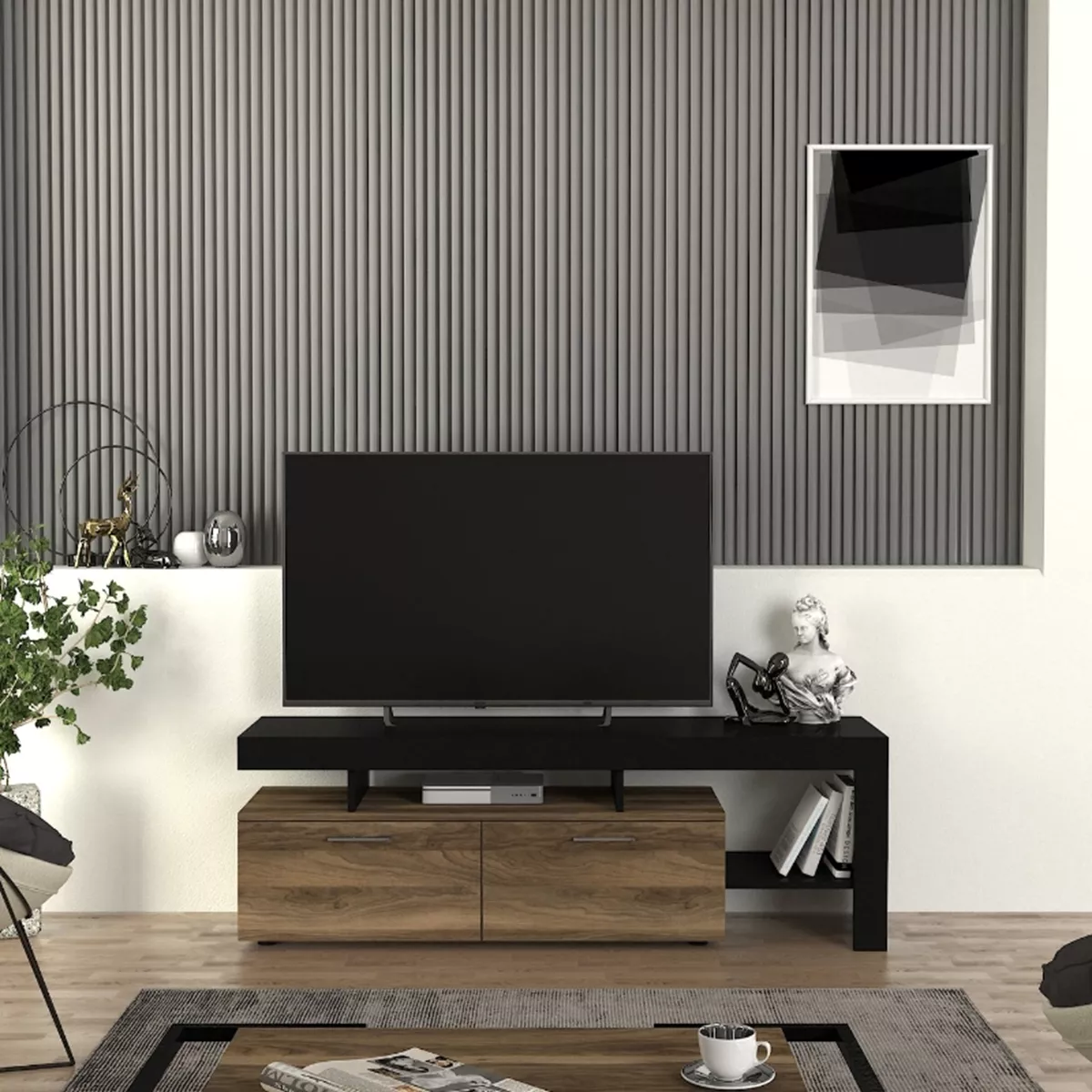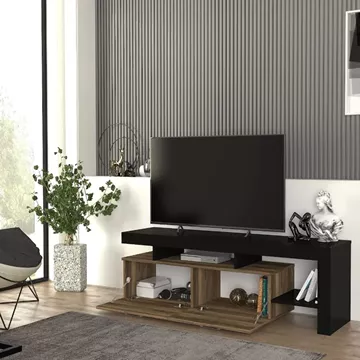Έπιπλο τηλεόρασης Acnes Megapap χρώμα μαύρο - καρυδί 160x40x53εκ.