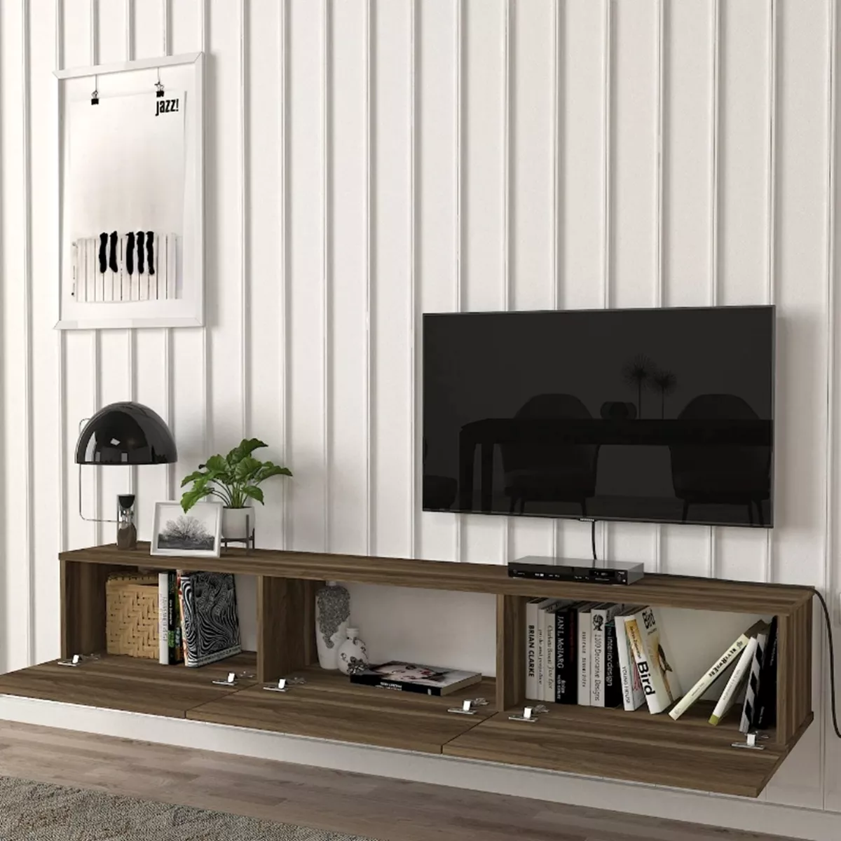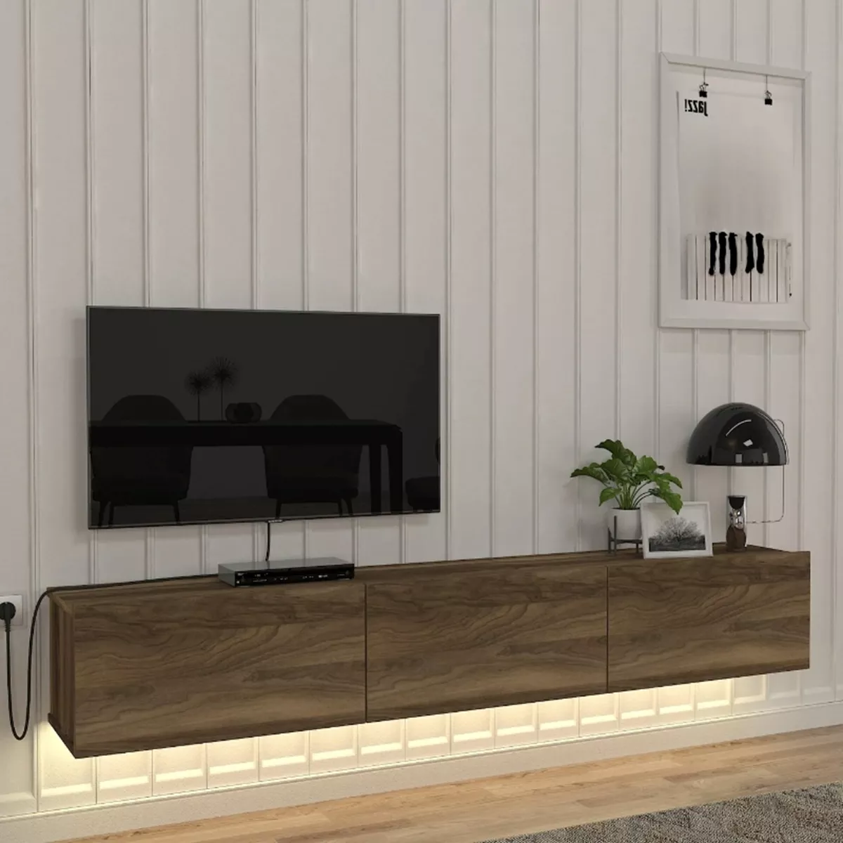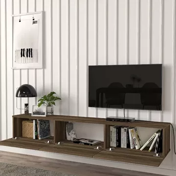 Έπιπλο τηλεόρασης επιτοίχιο Damla Megapap με LED χρώμα καρυδί 180x29,5x29,5εκ.